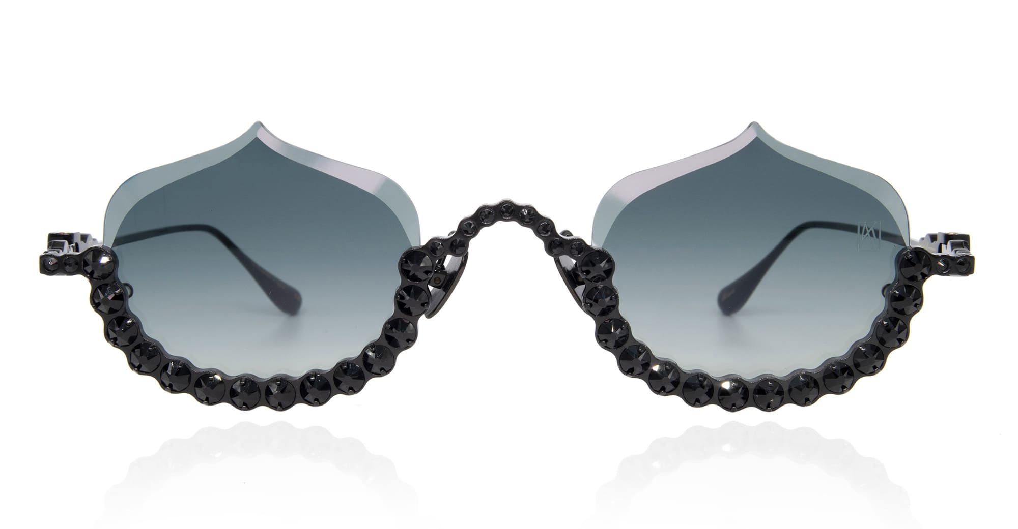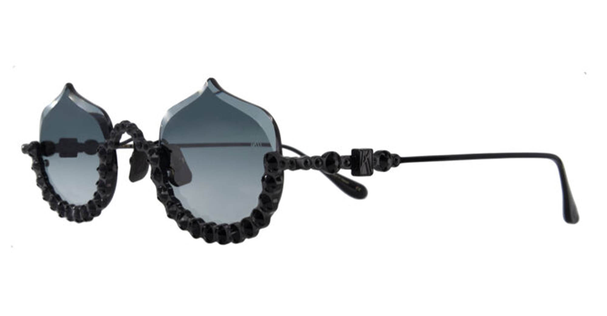 Anna-Karin Karlsson CRYSTAL MERINGUE - BLACK (S232-7704) are luxurious, feminine semi rimless sunglasses, part of the exclusive Anna-Karin Karlsson eyewear collection. They feature titanium structure with Swarovski crystal, custom nose pads, grey Zeiss lens engraved with AKK logo and 100% UV protection.