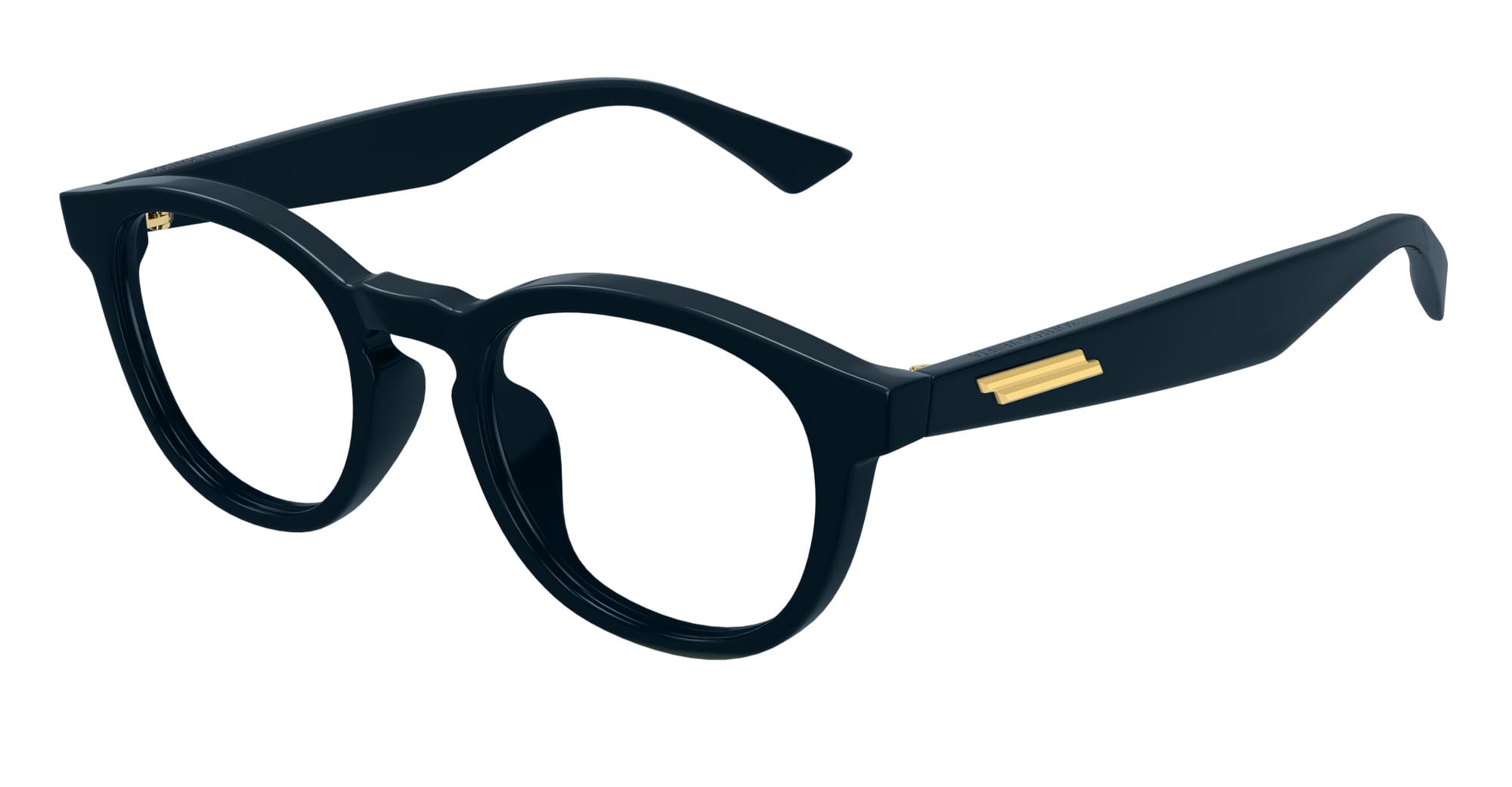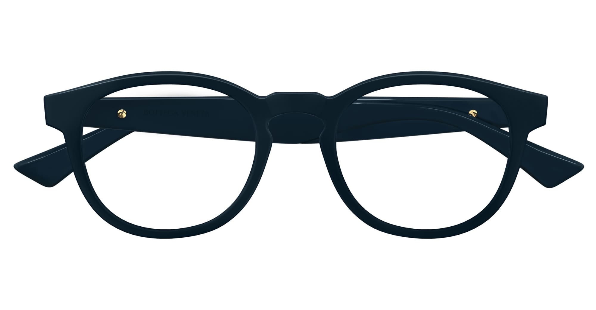 Bottega Veneta BV1339OK-004 - BLUE RX / ASIAN FIT (BV1339OK-004) are elegant round eyeglasses, part of the Bottega Veneta eyewear collection. They feature blue recycled acetate frame, metal ribbon elements on temples. Asian fit.