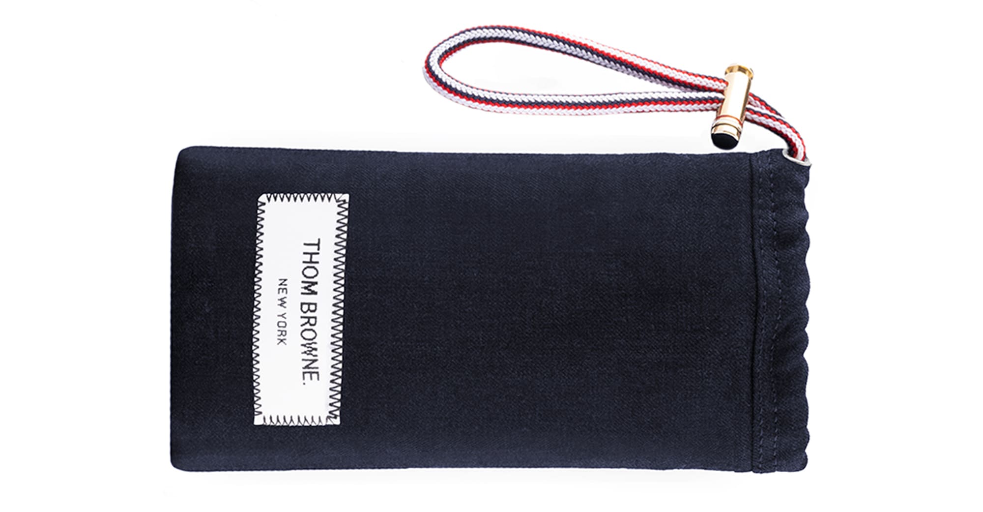 Thom Browne SOFT TWILL EYEWEAR CASE - NAVY BLUE (UAC059A-00626-415) is an elegant eyewear case crafted in Italy. It features navy blue super 120's twill made of 100% wool, striped cotton drawstring with gold hardware, color-contrast cotton patch with Thom Browne logo.