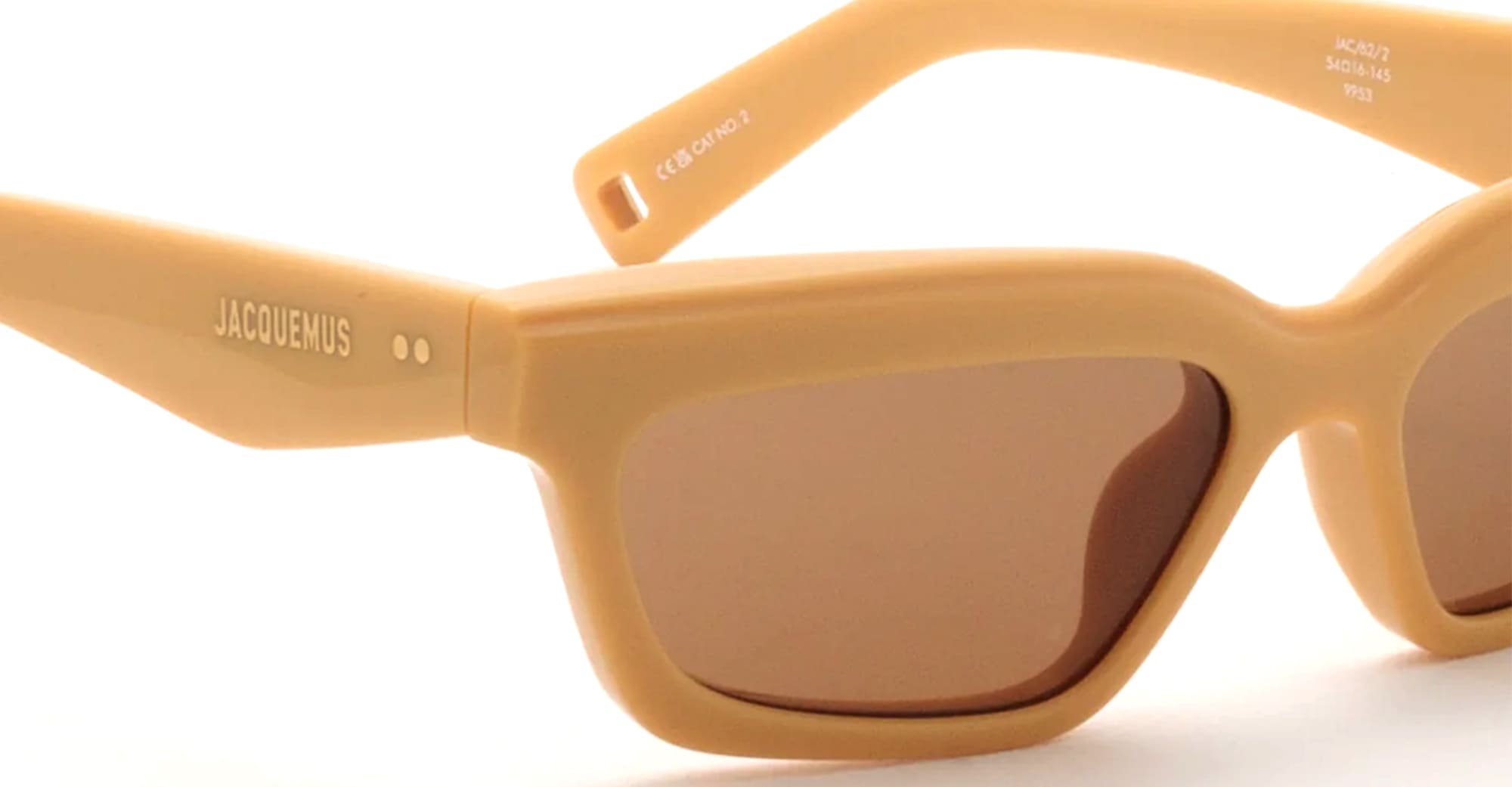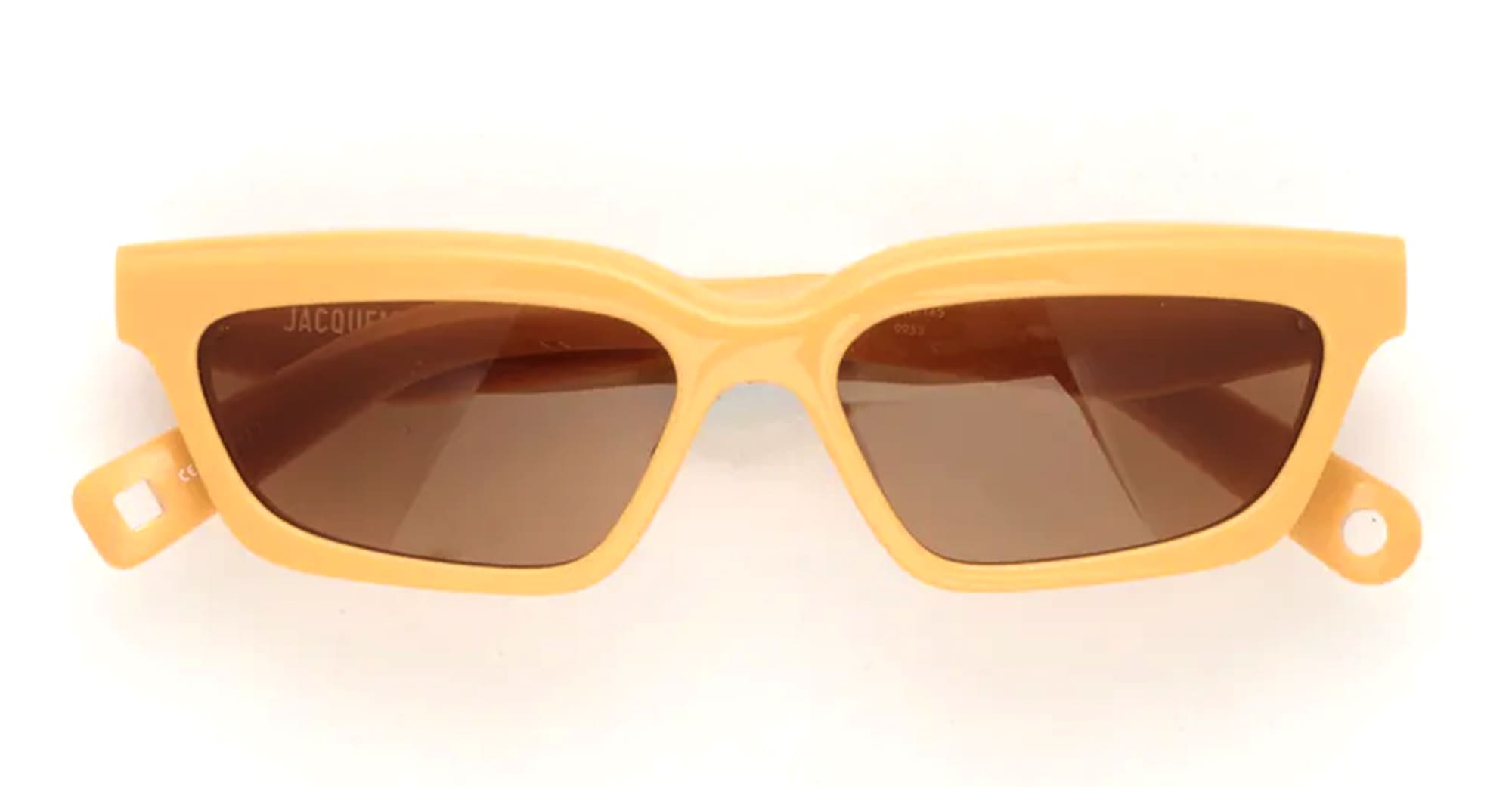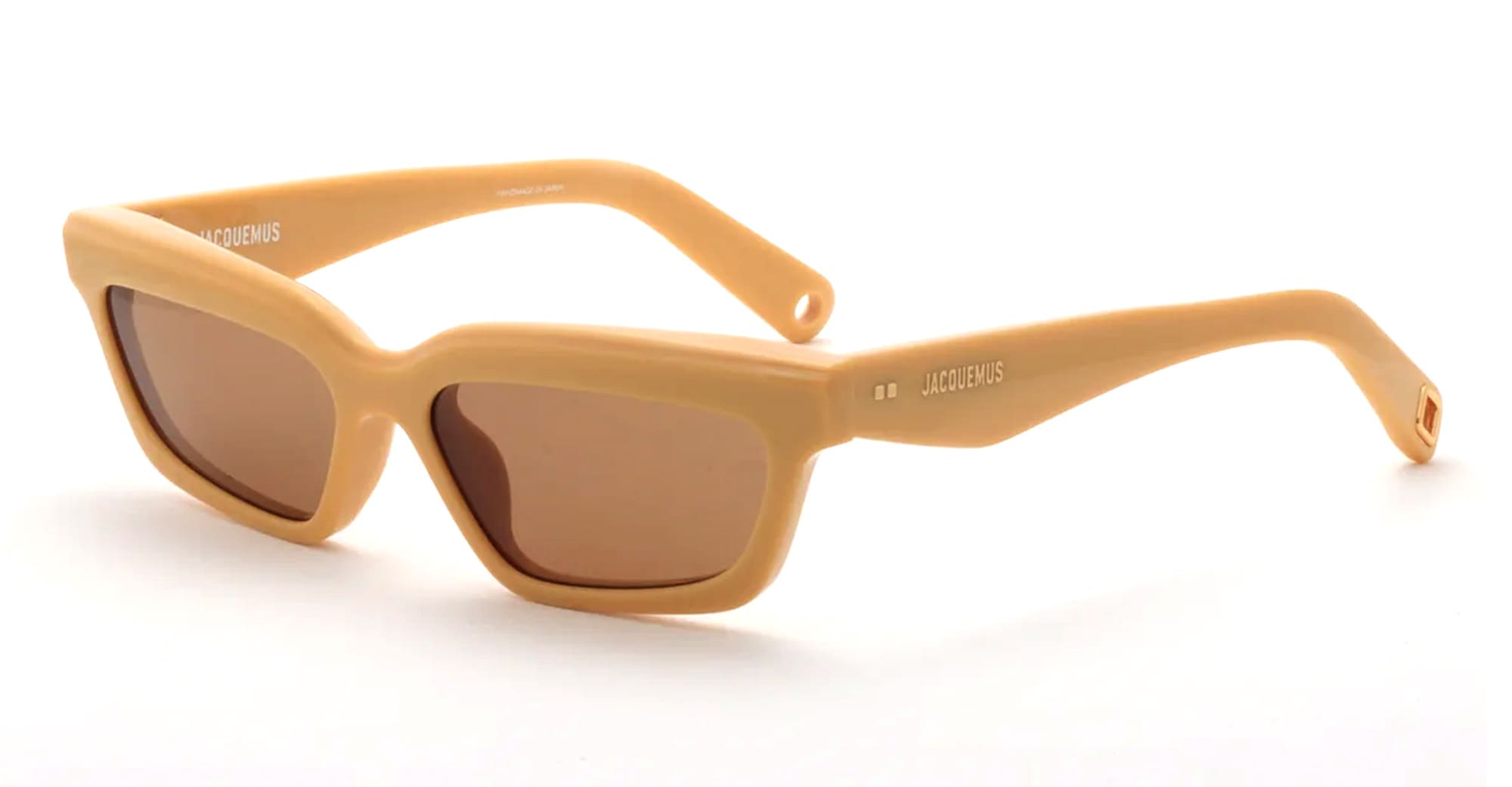 Jacquemus SALON - BANANA / BROWN LENS (JAC62C2SUN) are feminine rectangular sunglasses part of the Jacquemus eyewear collection. They feature yellow acetate frame with beveled details, logo on temple, stainless steel circle and square temple tips, and brown lens with 100% UV protection.