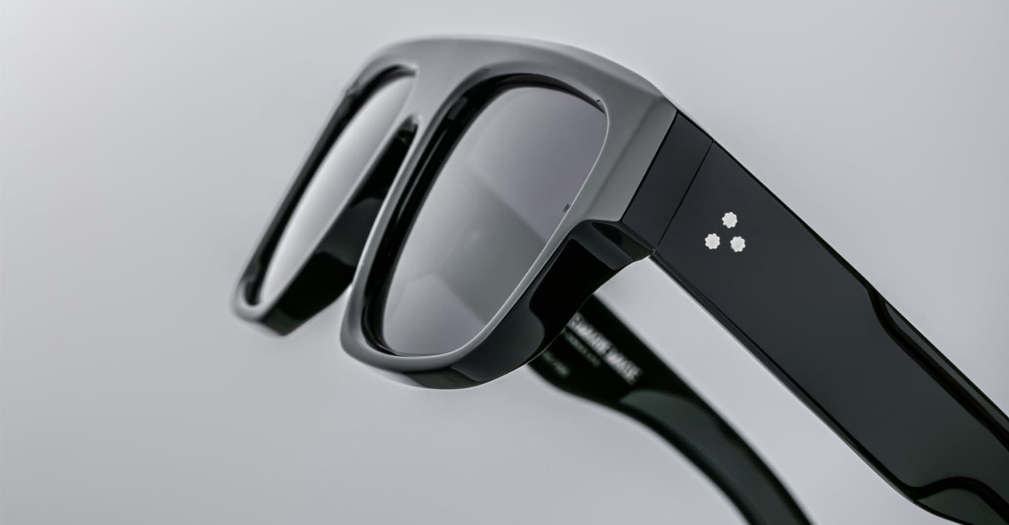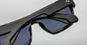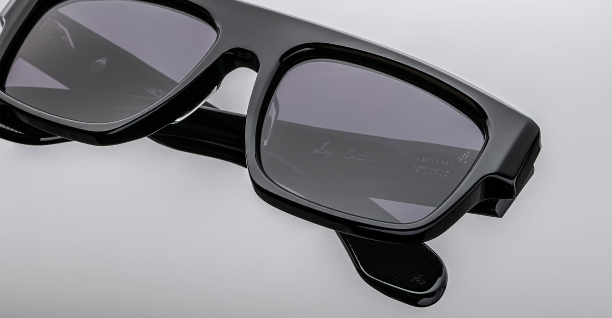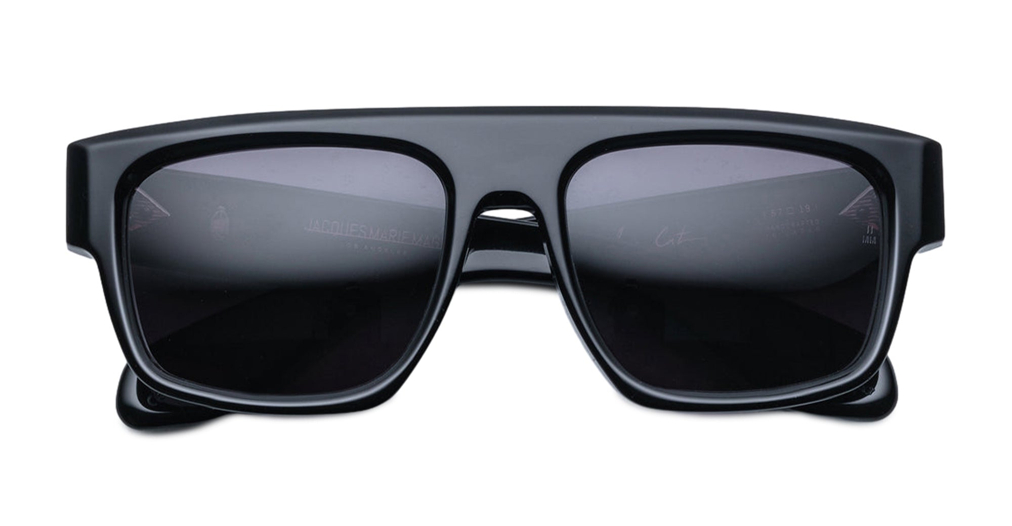 Jacques Marie Mage RITZ - NOIR (JMMRTZ-88) are bold rectangular sunglasses made in Japan, part of the GEORGE CORTINA FOR JACQUES MARIE MAGE. They feature black 10mm cured cellulose acetate frame with distinctive browline, custom double laminated acetate temples, hidden wirecore, silver tension-secured custom 9 barrel hinge, sculpural acetate temples, black CR39 4 base lens with backside anti-reflective treatment and 100% UV protection. *Not suitable for use when driving.