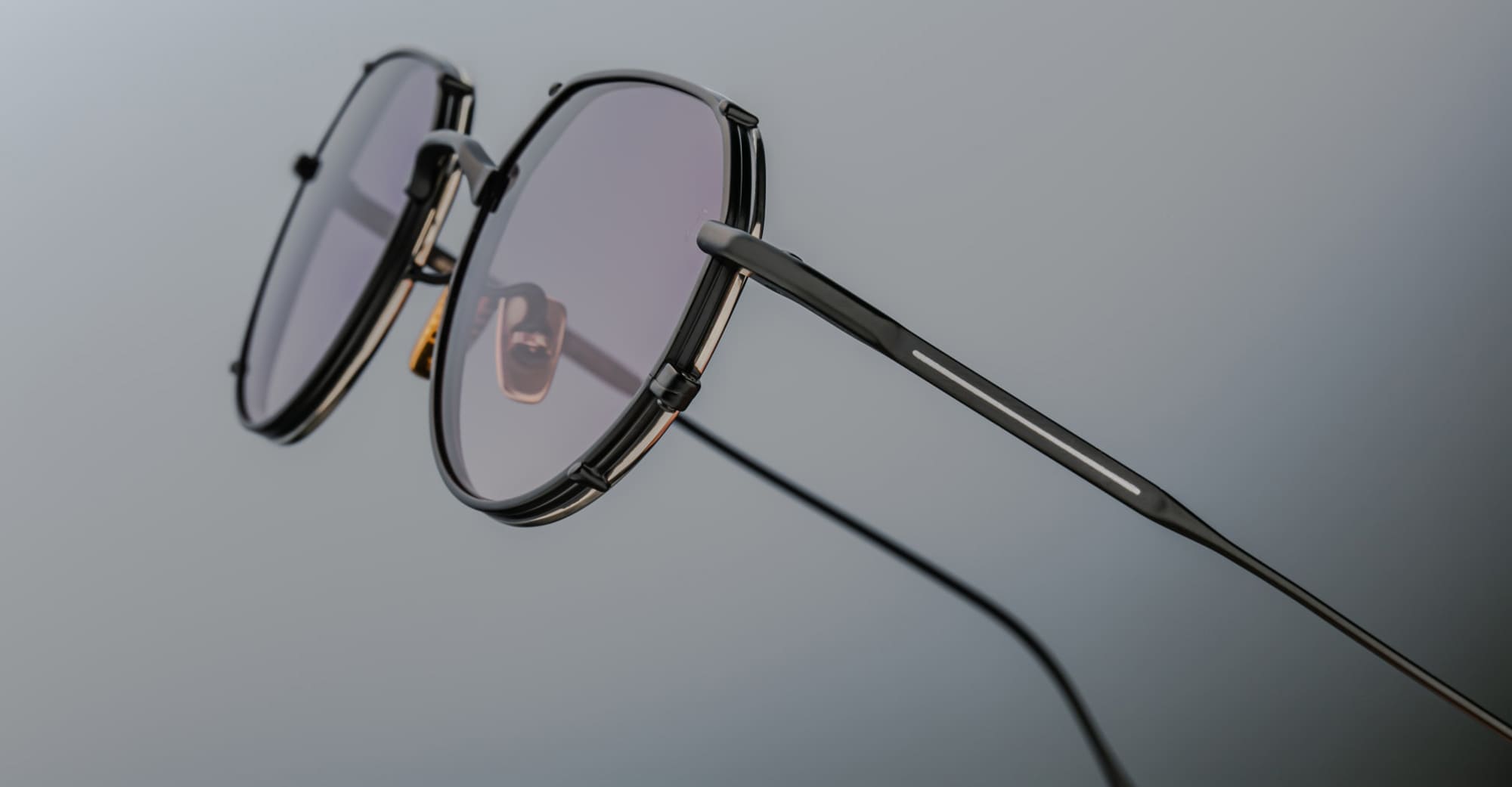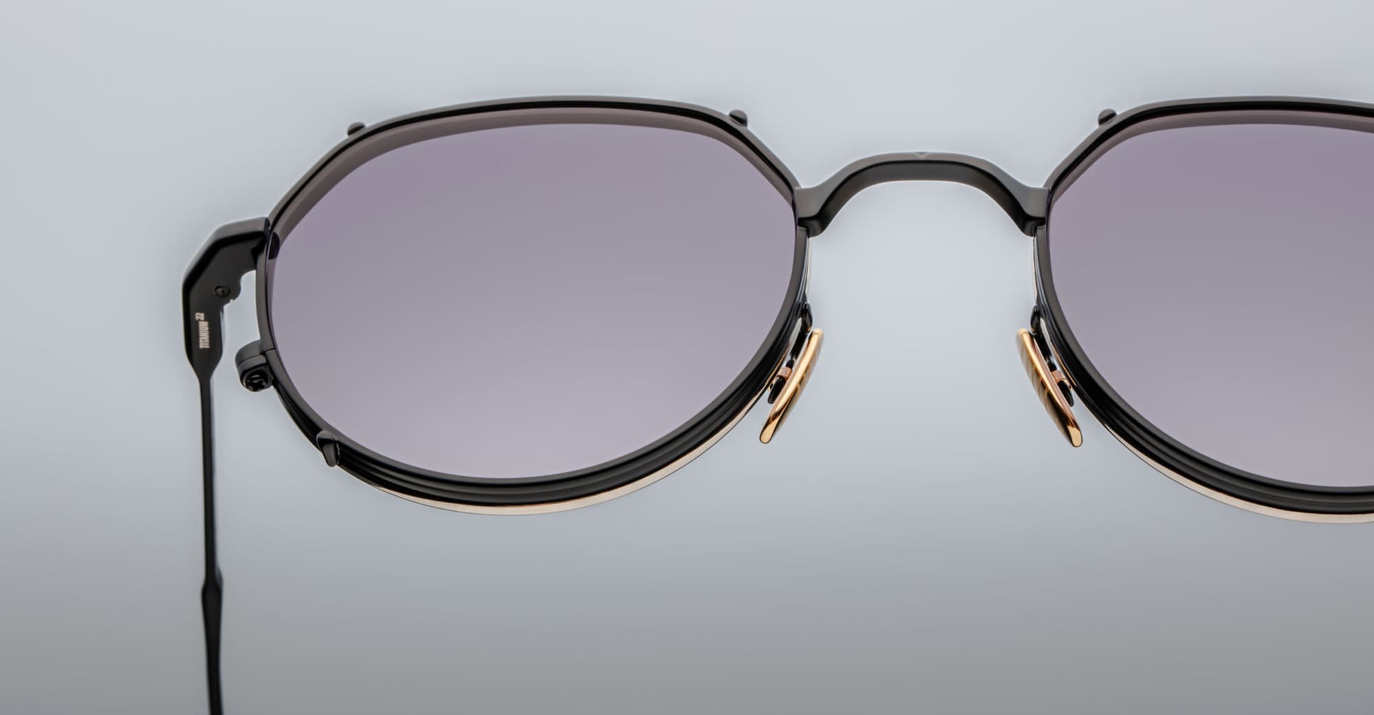 Jacques Marie Mage HARTANA - BLACKBERRY (JMMTN-12K) are round, elegant and impeccably constructed sunglasses made in Japan. They feature lightweight panto-shaped design with matte black beta titanium frame, double-layered eye-rim that creates a clip-on effect, custom hidden hinge, custom titanium nose pads with logo and engraved decorations, 4 base CR39 lens with anti-reflective treatment, and 100% UV protection.
