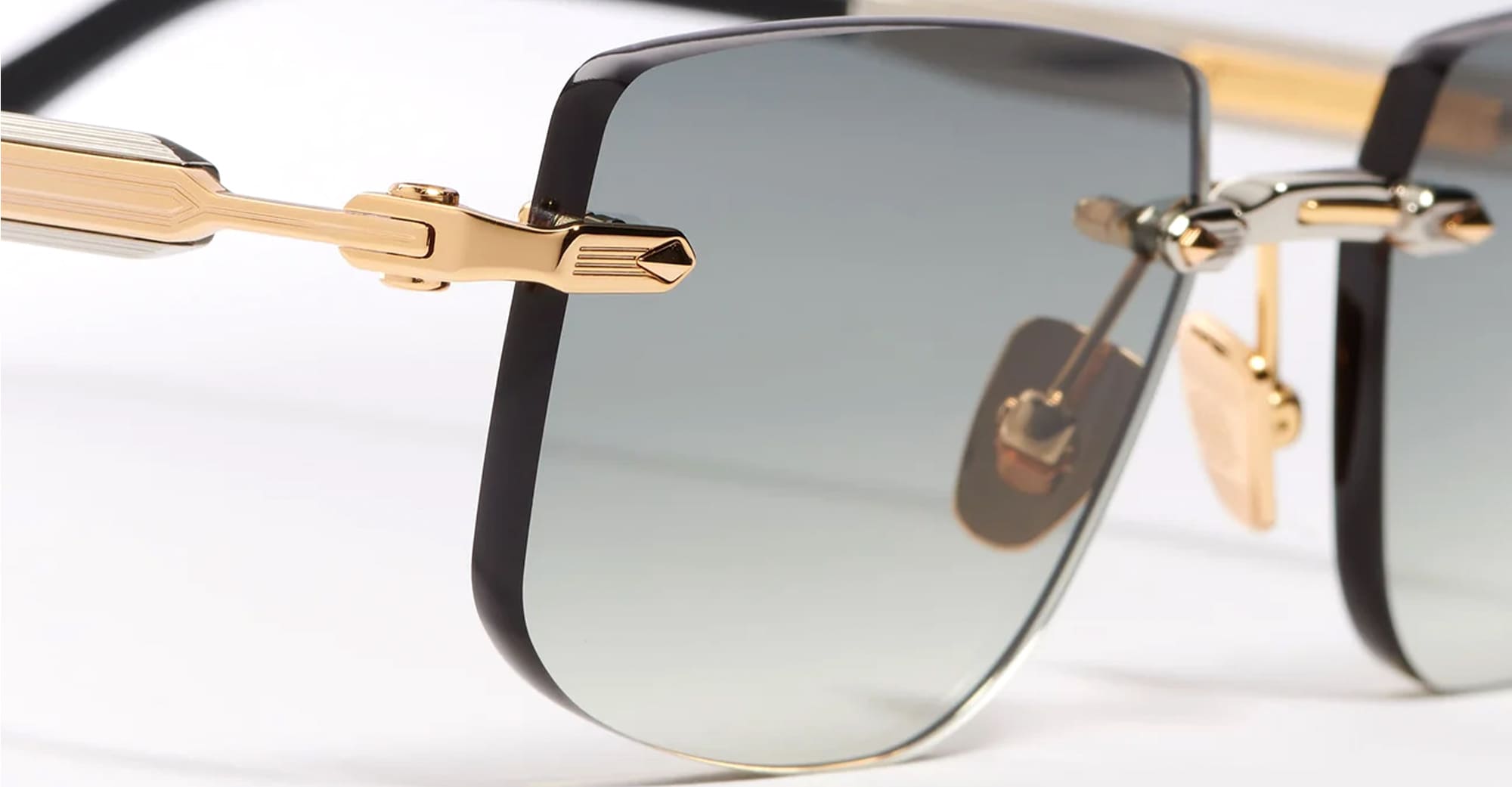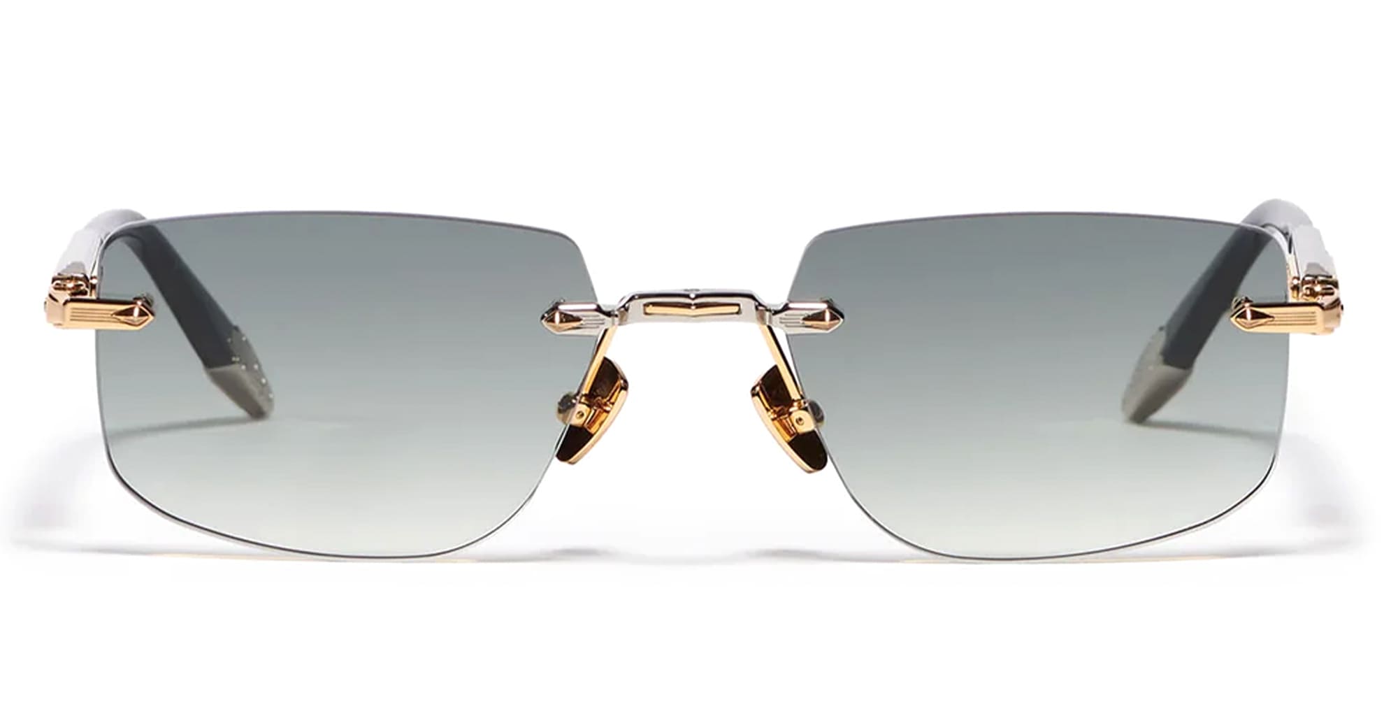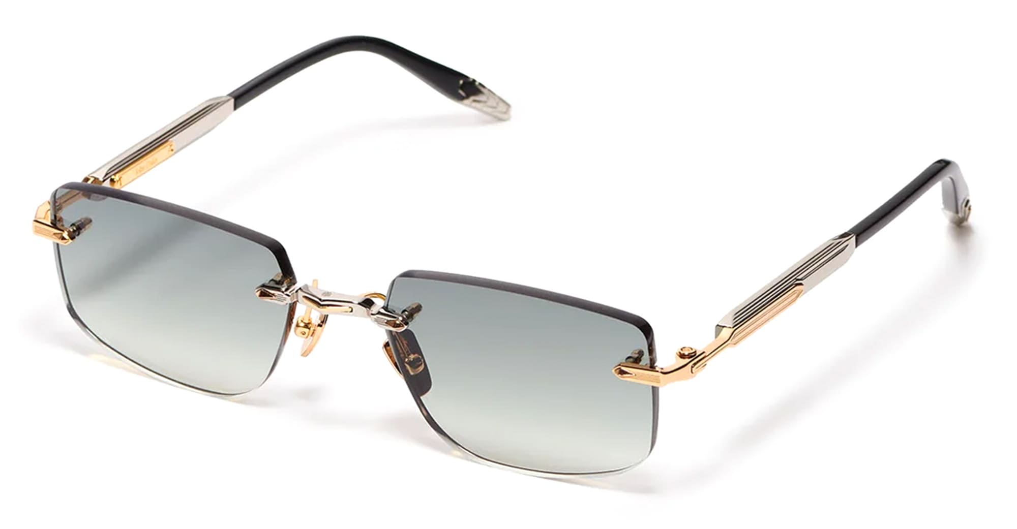 John Dalia R04 - C477 YELLOW GOLD / PLATINE PLATED (R04-C477) are elegant rimless sunglasses with rounded rectangular lens shape, part of the exclusive John Dalia eyewear collection. They feature a stainless steel with a 5µ yellow gold plating (jeweler s hallmark inside the temple), sculpted acetate temples, G15 gradient CR39 lenses with an anti-reflective coating on the inner surface, and 100% UV protection.