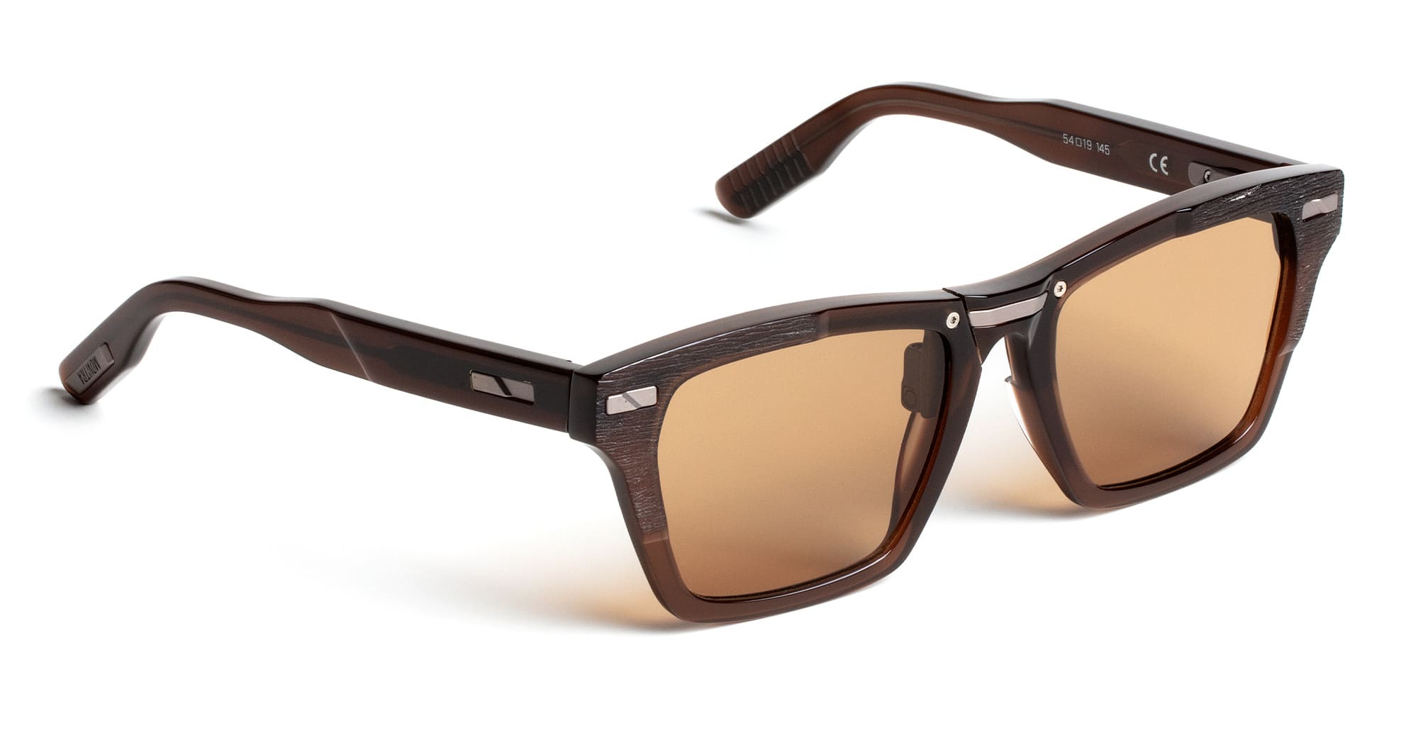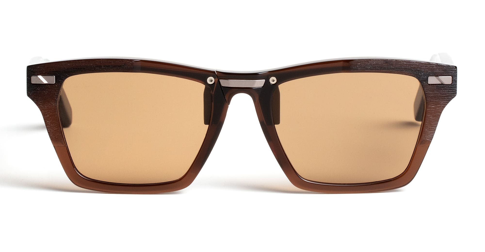 Movitra AS02 - BROWN / LIGHT BROWN LENS (AS02 BROWN S) are elegant squared sunglasses handcrafted in Italy, part of the innovative Movitra collection. They feature crystal brown Mazzucchelli acetate frame with dual polished brushed finish, titanium bar behind the front with integrated MOTUS rotation mechanism, spring hinge with custom titanium hinge block, acetate temples, exposed screws and bushings with Torx heads, differentiated galvanic inserts, and light brown Zeiss lens with 100% UV protection.