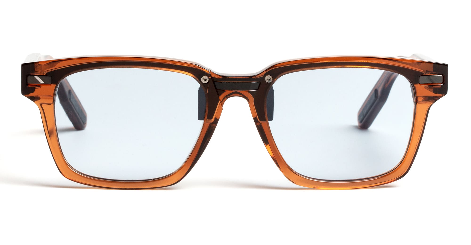Movitra MOMENTUM 05 - C2 LIGHT BROWN / BLUE LENS (MOMENTUM 05-C2 S) are elegant rectangular eyeglasses handcrafted in Italy, part of the innovative Movitra collection. They feature crystal light brown Mazzucchelli acetate frame, titanium bar behind the front with integrated MOTUS rotation mechanism, spring hinge, acetate temples with leather covered inner temple plate, exposed screws and bushings with Torx heads, differentiated galvanic inserts, and blue Zeiss lens with 100% UV protection.