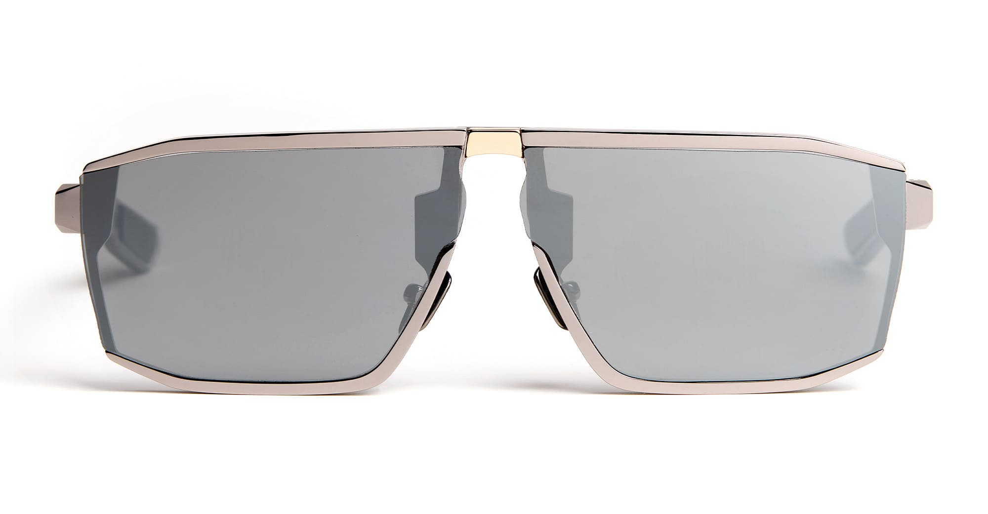 Movitra PHAENOMENON 02 - C2 LIGHT GREY / SILVER LENS (PHAENOMENON 02-C2) are modern mask sunglasses handcrafted in Italy, part of the innovative Movitra collection. They feature light crystal grey titanium front, titanium nose bridge, integrated MOTUS rotation mechanism behind the lens, custom nose pads, spring hinge, acetate temples with leather covered inner temple plate, exposed screws and bushings with Torx heads, differentiated galvanic inserts, and oversized silver mirror Zeiss lens with 100% UV protection.