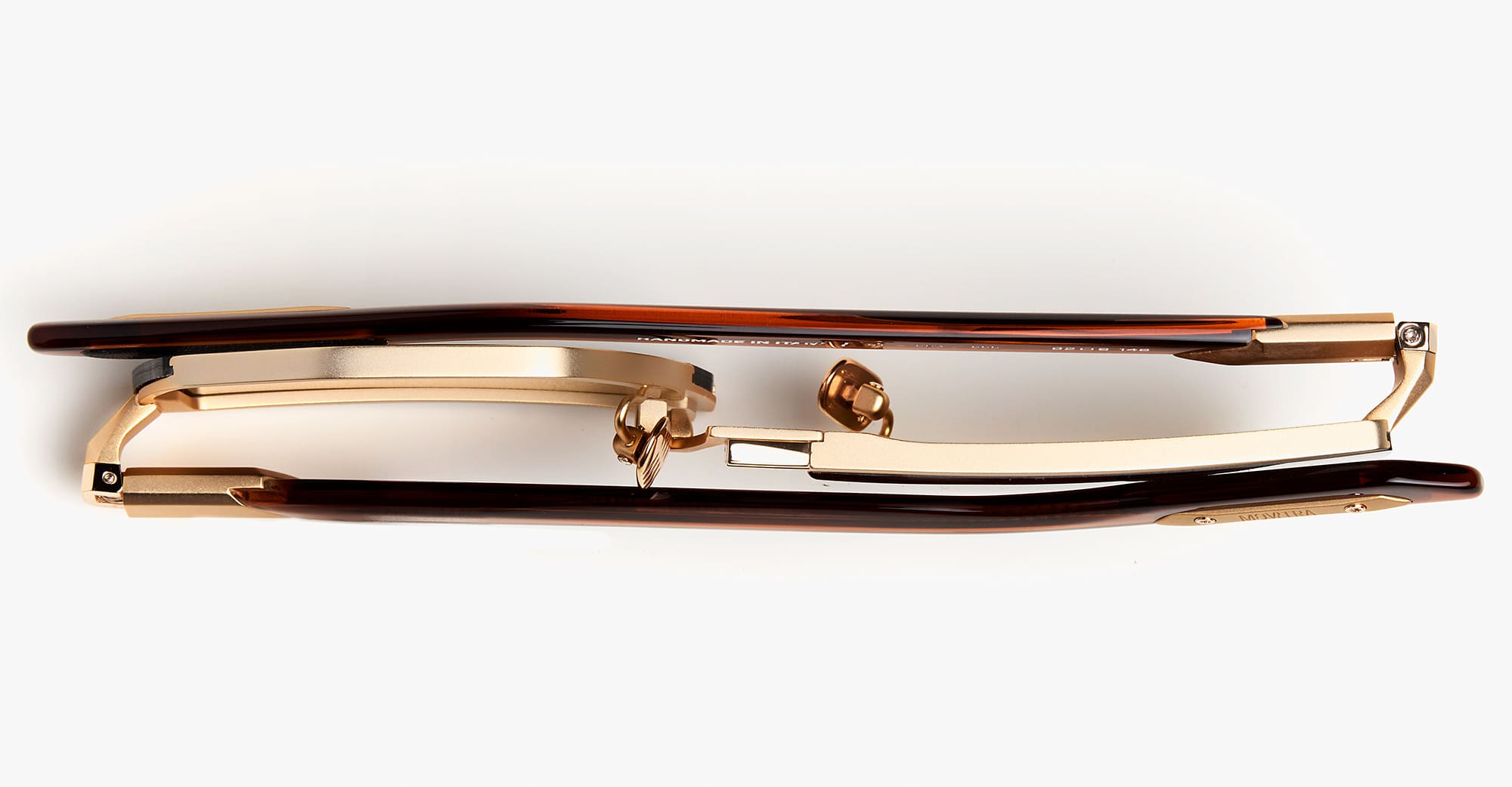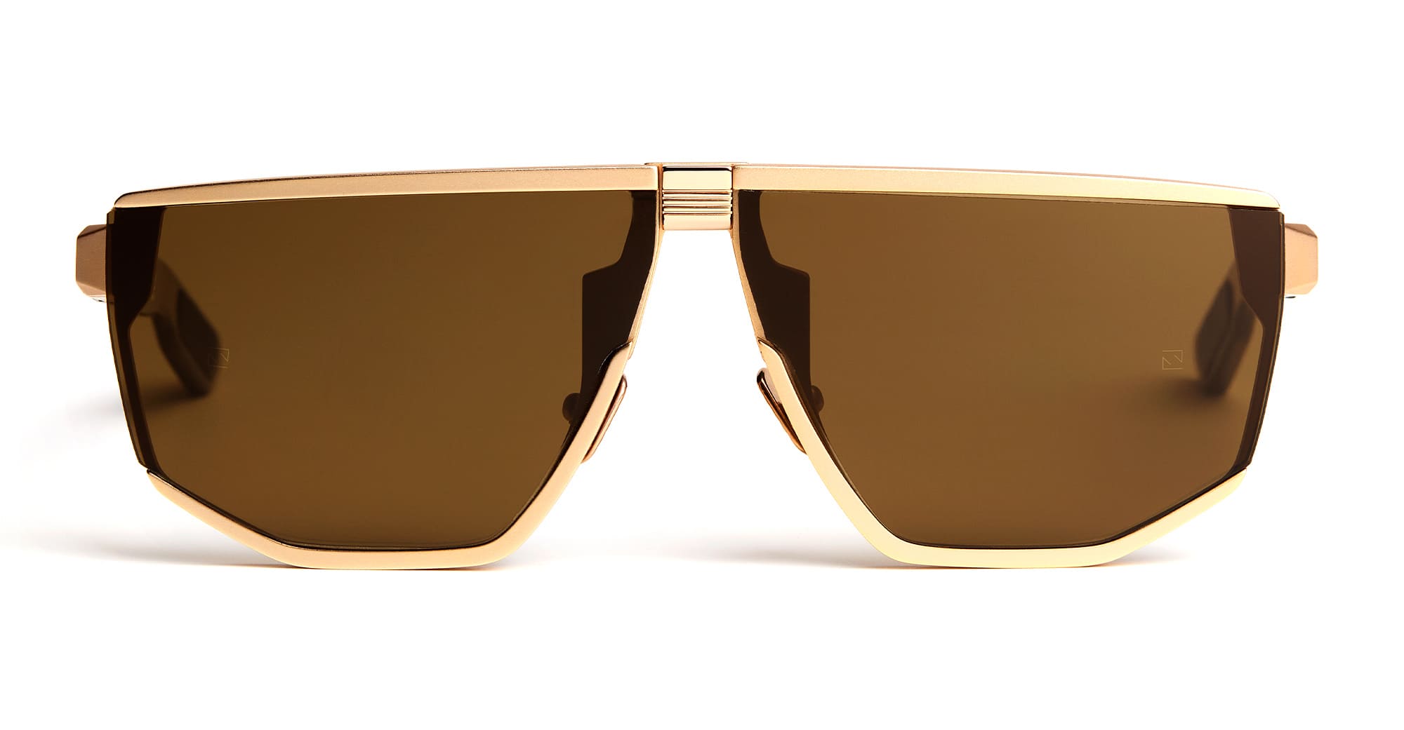 Movitra PHAENOMENON 03 - C3 LIGHT BROWN / BROWN LENS (PHAENOMENON 03-C3) are modern mask sunglasses handcrafted in Italy, part of the innovative Movitra collection. They feature rose gold titanium front, titanium nose bridge, integrated MOTUS rotation mechanism behind the lens, custom nose pads, spring hinge, light brown acetate temples with leather covered inner temple plate, exposed screws and bushings with Torx heads, differentiated galvanic inserts, and oversized brown Zeiss lens with 100% UV protection.