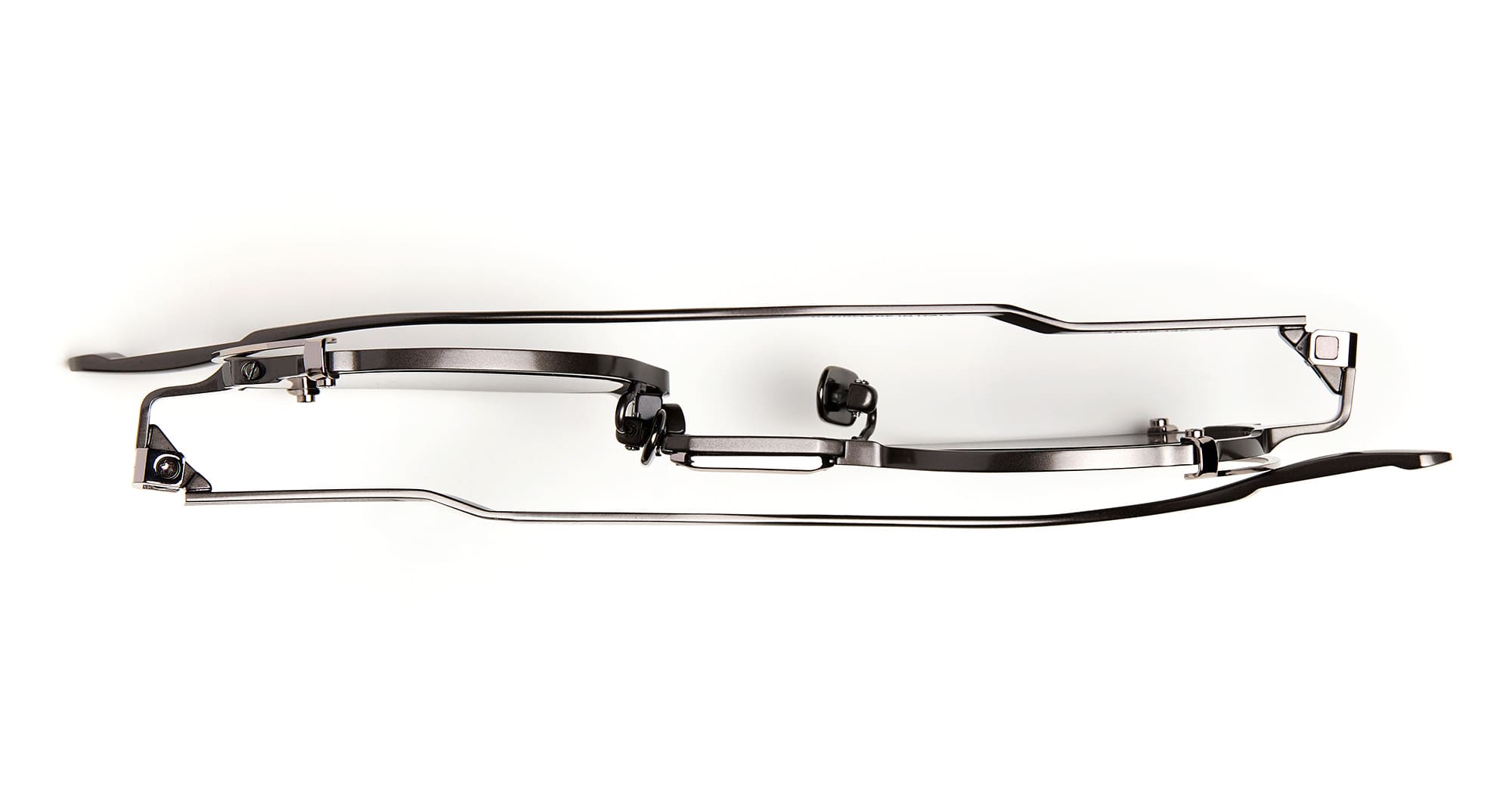 The revolutionary frame can rotate on itself, allowing the hinges to fully cover and protect the lenses. We have designed a unique patented® locking system built to last, extending the life cycle of your lenses.The rotating mechanism is stress tested for over 500,000 rotations and is guaranteed for life.