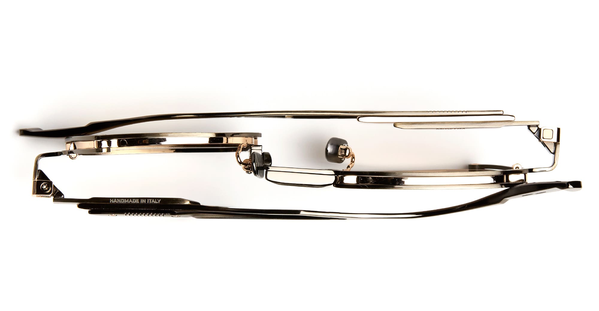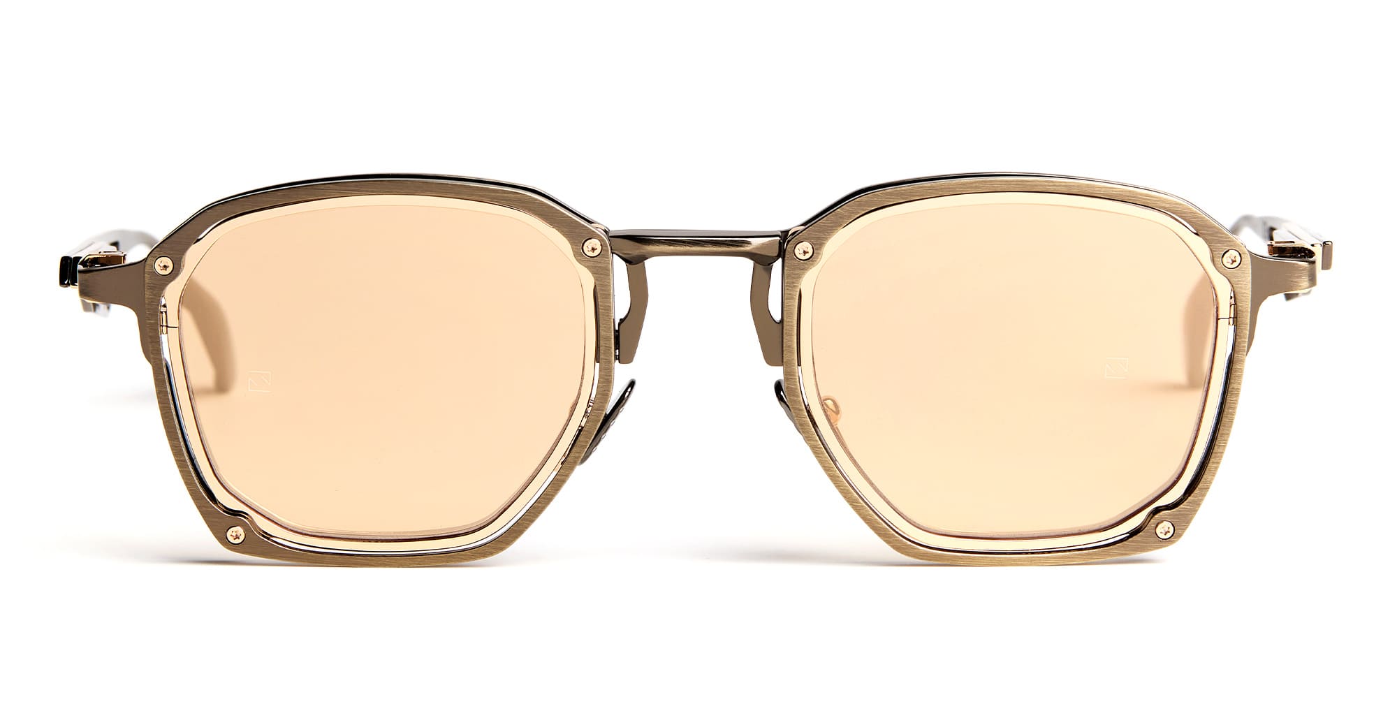 Movitra TRINITAS 01 - C3 ANTIQUE GUNMETAL / GOLD LENS (TRINITAS 01-C3) are modern squared sunglasses handcrafted in Italy, part of the innovative Movitra collection. They feature antique gunmetal metal structure, integrated MOTUS rotation mechanism behind the lens, custom nose pads, anti-unscrewing hinge, three layers temples metal construction with adjustable lenght, exposed screws and bushings with Torx heads, differentiated galvanic inserts, and gold mirror Zeiss lens with 100% UV protection.