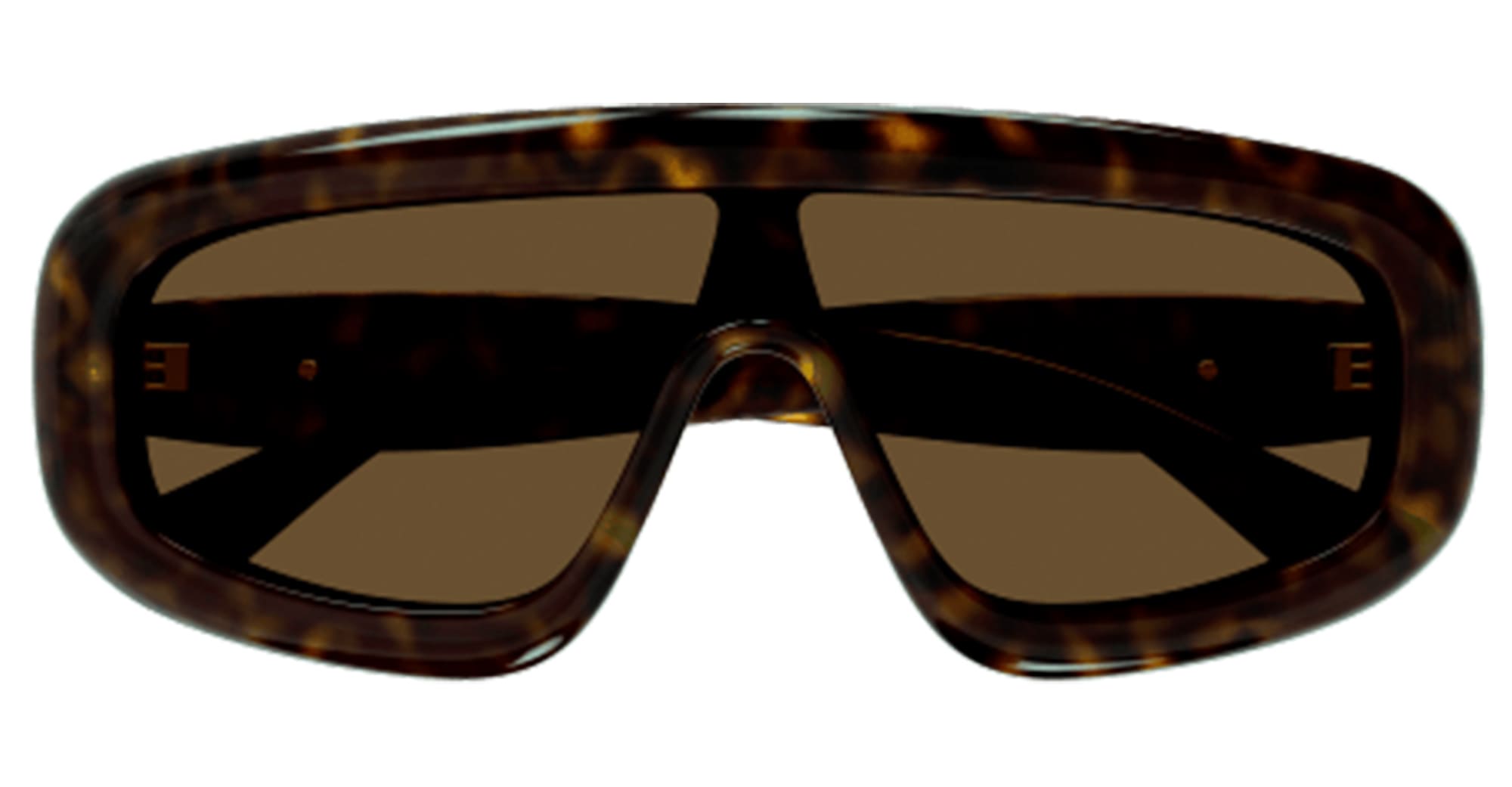 Bottega Veneta BV1281S-002 - HAVANA (BV1281S-002) are big unisex mask sunglasses made in Italy. They feature havana recycled acetate frame with rounded volumes, iconic metal fringed ribbon decoration on temples, and brown bio-nylon lens with 100% UV protection.