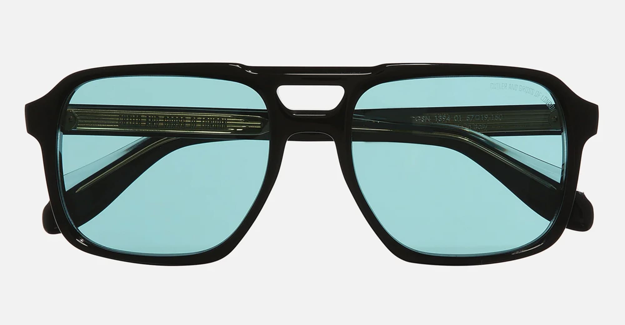 Cutler and Gross 1394 - BLACK / BLUE LENS (CGSN-1394-57-01) are aviator sunglasses made in Italy. They feature black acetate structure, and blue lens with 100% UV protection.