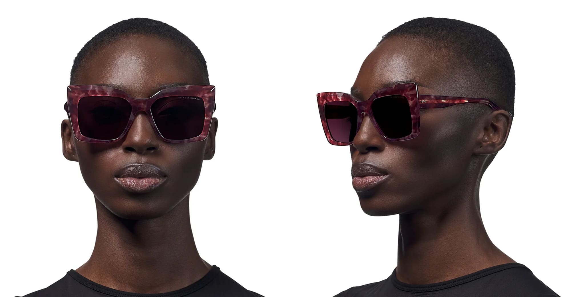 DITA TELEMAKER - ROSE TORTOISE (DTS704-A-05) are butterfly sunglasses made in Japan. They feature high quality 6mm acetate frame with elegantly skived angular finish, custom wire core with intricate pressed detail, Dita's hex screw hinges, cherry gradient 6 base CR39 lens with 100% UVA and UVB protection and anti-reflecting coating.