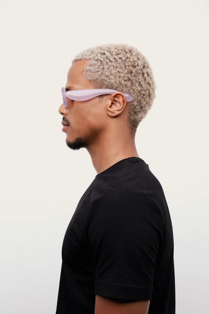Paloceras PEBBLE - LILAC DREAM RX (pebble-lilac-dream-rx) are round sunglasses with exaggerated, inflated volumes. They feature 8mm violet cured Mazzucchelli acetate frame with DualLayer™ laminated construction, custom Visottica gold-plated wirecore and 5-joint hinge system, gold-tone engraving logo, and CR39 2 base brown lens with backside anti-reflective treatement and 100% UV protection.