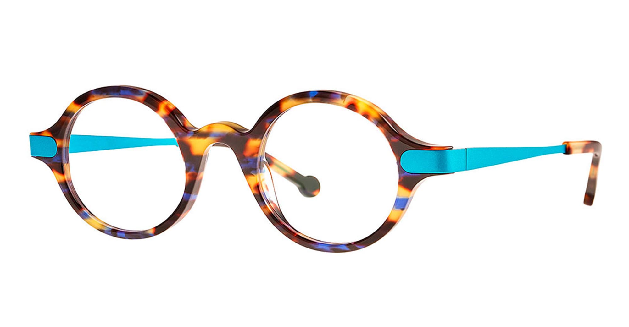 Theo eyewear DUET- 03 HAVANA / ELLY BLUE RX (DUET-3) are elegant, colorful eyeglasses made in Belgium. They feature a lightweight bi-color stainless steel frame with a round shape, titanium temples with acetate tips.