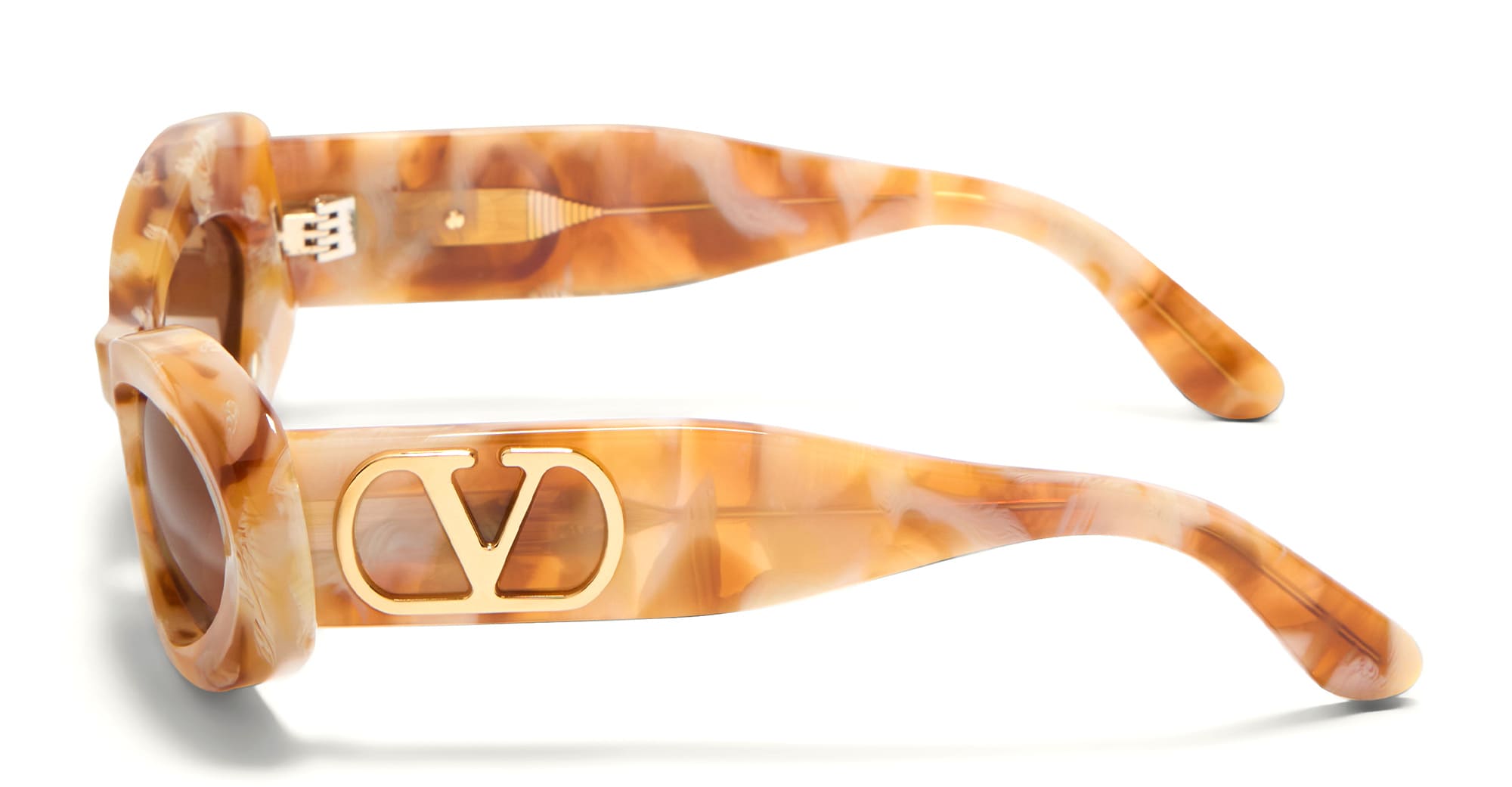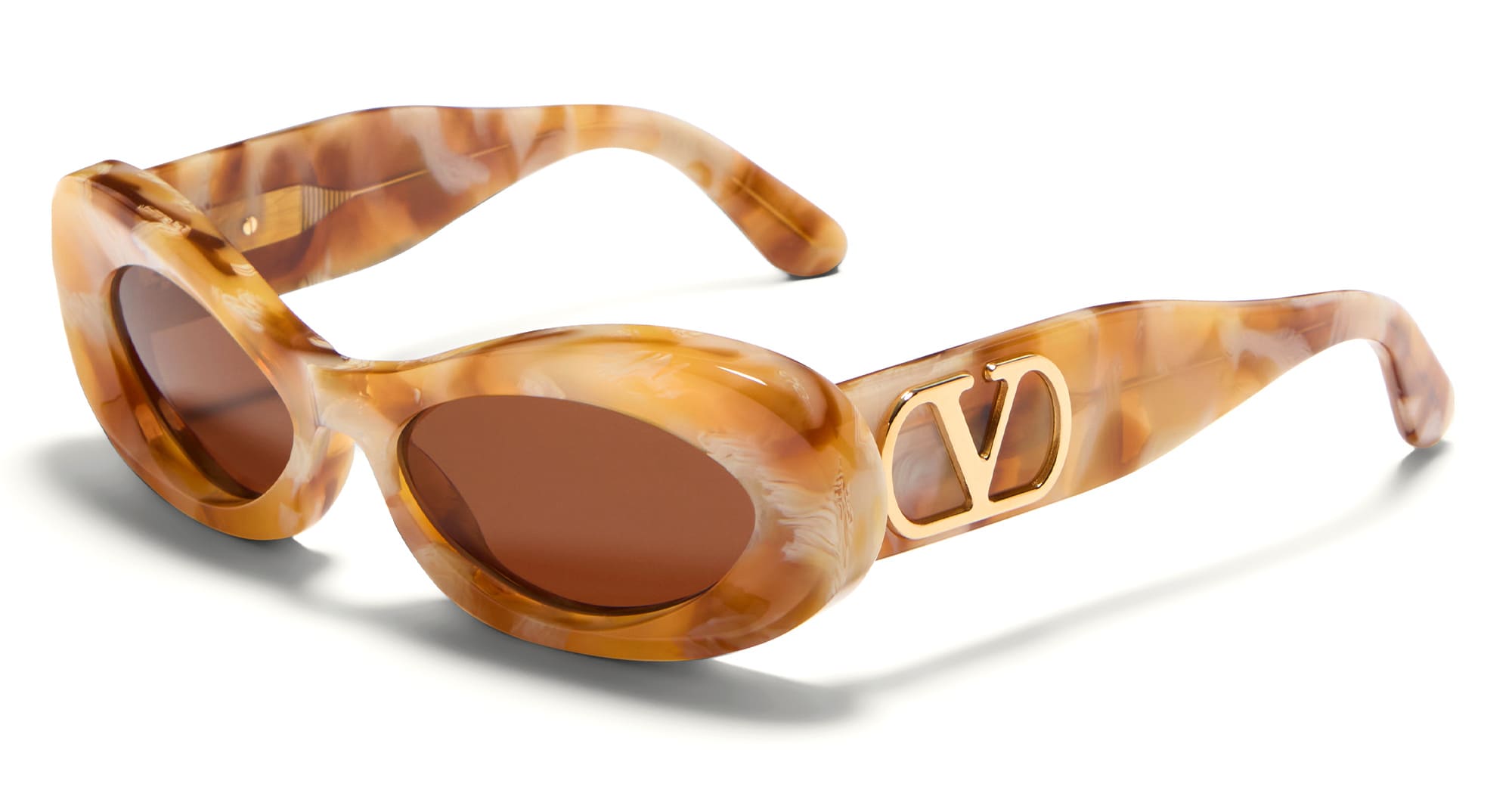 Valentino VLS-178D - HAVANA HONEY (VLS-178D-57) are 60's-inspired oval cat-eye sunglasses made in Japan. They feature sculpted havana acetate frame, acetate temples with Vlogo, and brown lens with 100% UV protection.