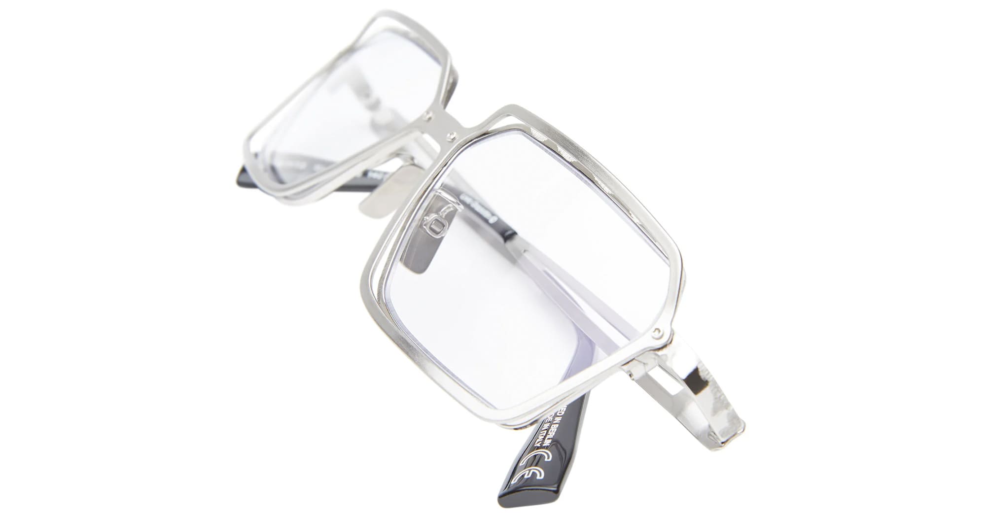 Kuboraum MASK H15 - SILVER RX (KROH15SI000000OP) are elegant squared sunglasses with a hammered texture effect, part of the exclusive Kuboraum eyewear collection. They feature a silver metal frame with double lens rims, metal temples with acetate tips.