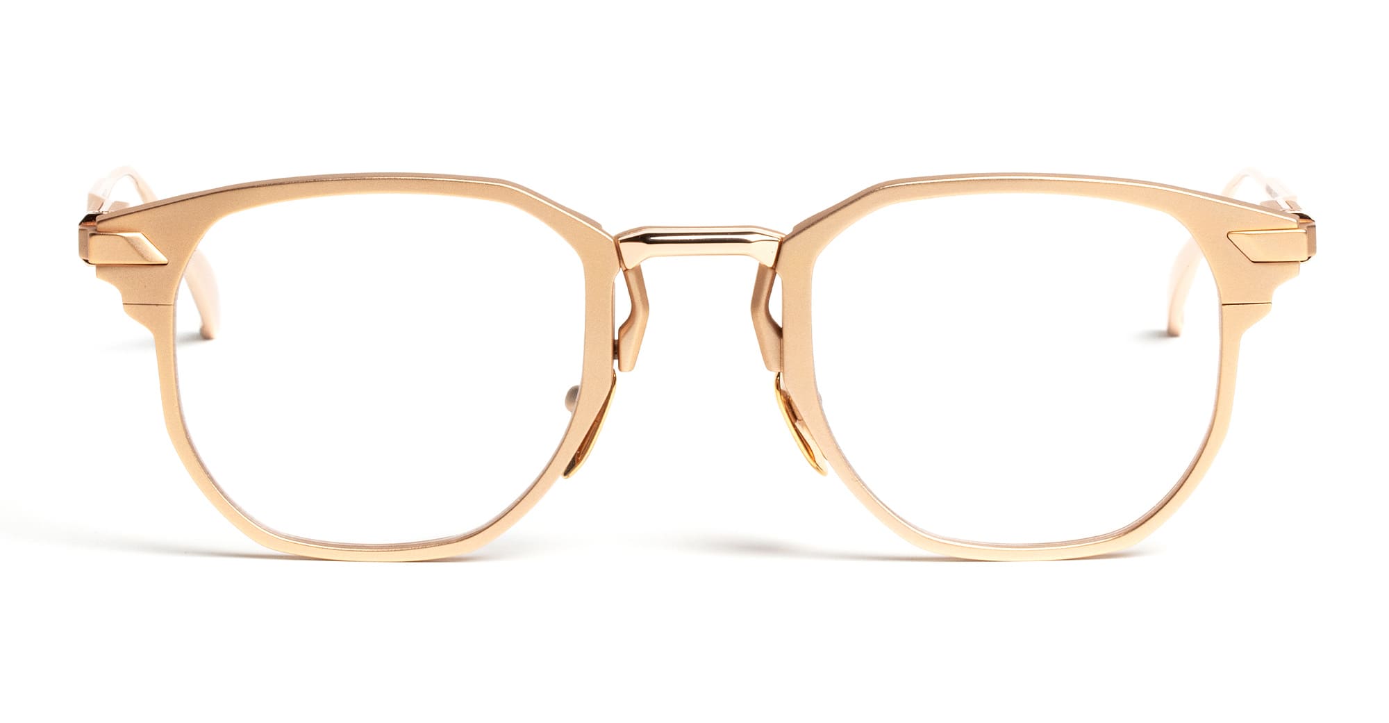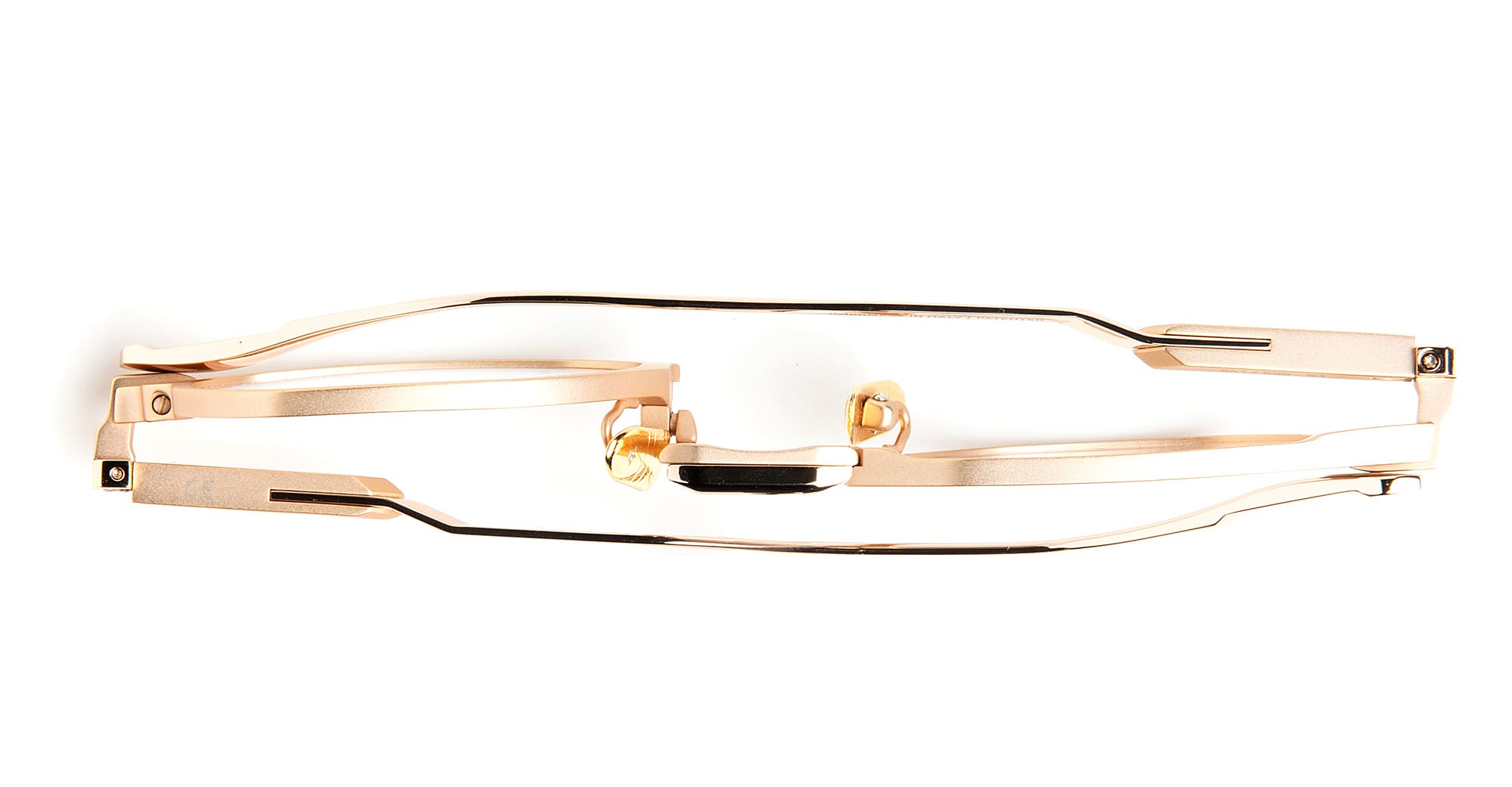 Movitra VIS INSITA 01 - C2 LIGHT GOLD RX (VIS INSITA 01-C3 D) are modern eyeglasses handcrafted in Italy, part of the innovative Movitra collection. They feature brushed light gold titanium structure with galvanic inserts, two-piece titanium nose bridge, integrated MOTUS rotation mechanism behind the lens, custom nose pads, spring hinge, exposed screws and bushings with Torx heads.