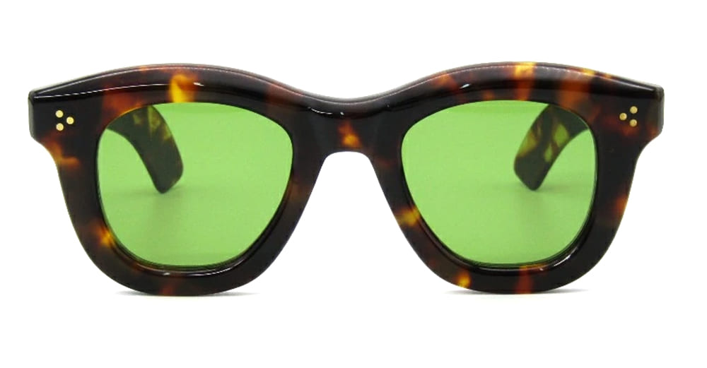 Max Pittion CASSE WELLINGTON - DARK TORTOISE / GREEN LENS (MXPL-003E) are sophisticated wellington sunglasses crafted in Japan, named after La Grande Casse - a Majestic Alpine peak. They feature a hand-finished dark tortoise Japanese acetate frame carved from 8 mm thick cotton-based acetate, ensuring durability and style. The design includes brass pins and five-barrel hinges that are welded into place for a clean, smooth finish. A patterned core wire runs through the center of the temples, while the straight Massue-style temples are complemented by curved and rounded temple tips. With gradient green lens providing 100% UV protection, these sunglasses combine elegance with functionality, making them perfect for any occasion.