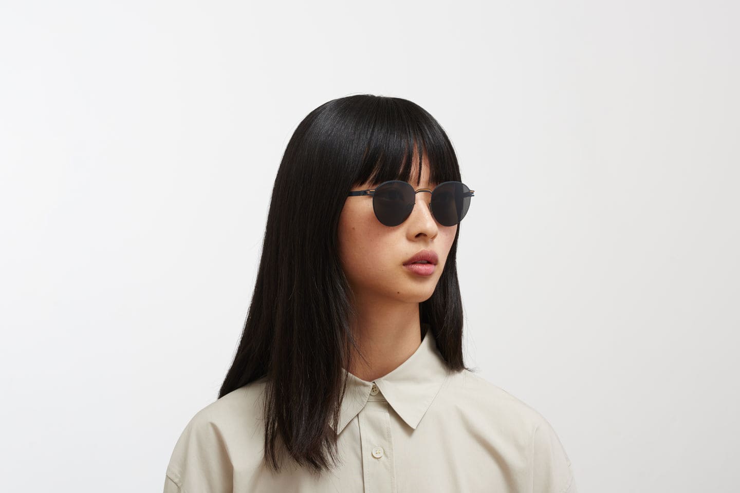 Mykita CARLO - INDIGO / ORANGE (10016708) are round sunglasses made in Germany, part of the Mykita N01 Colletion. They feature lightweight indigo blue stainless steel structure with orange accent details, patented screwless hinge system, silicone nose pads and temple tips, dark grey lens with 100% UV protection.