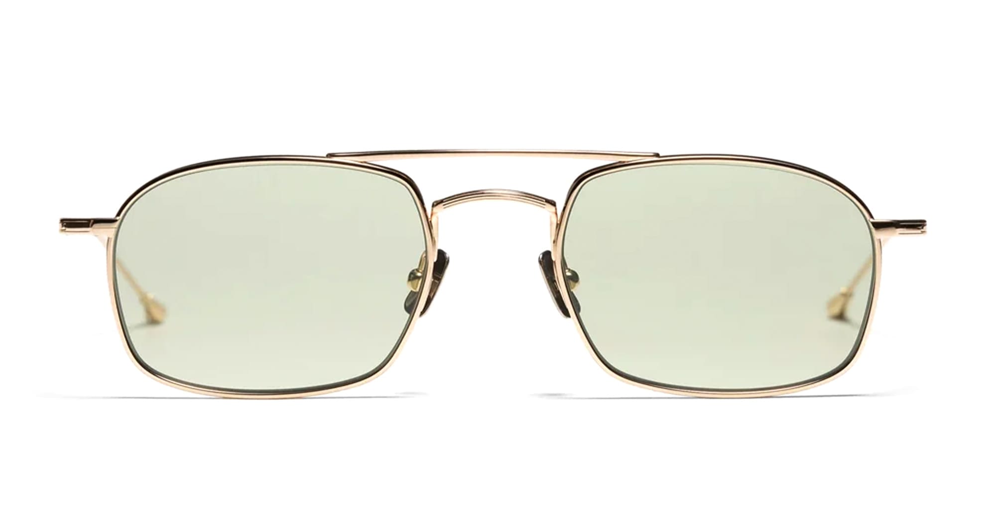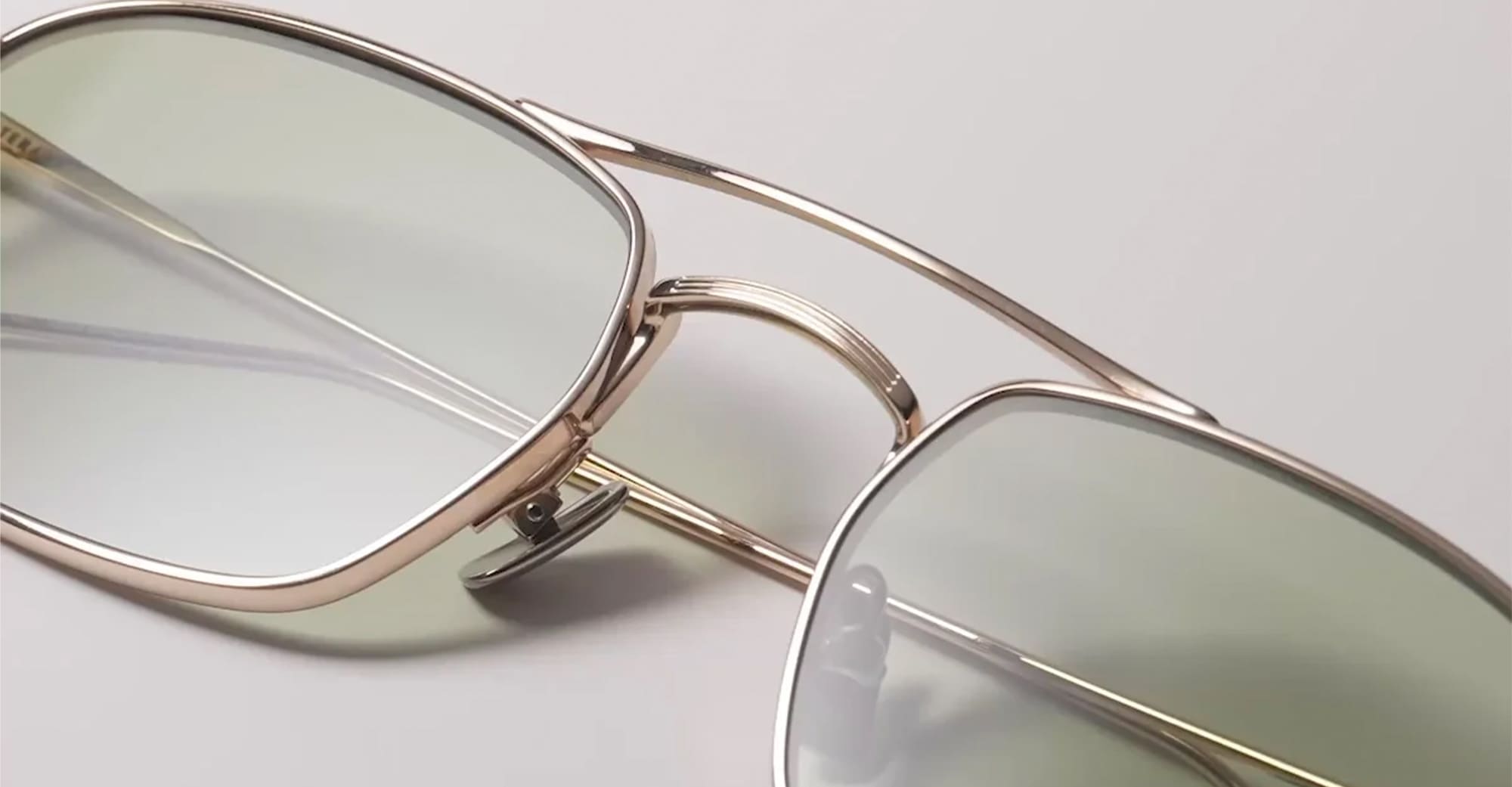 Peter and May TT9 MINI MACHINE - GOLD GRAPHITE GREEN (TT9GGG) are unisex, elegant titanium rectangular aviator sunglasses, part of the Peter and May Titanium Line. They feature a nickel-free beta titanium structure, block beta titanium custom hinge, custom temple tips and Peter and May logo, and 0.5 base green lens with 100% UV protection.