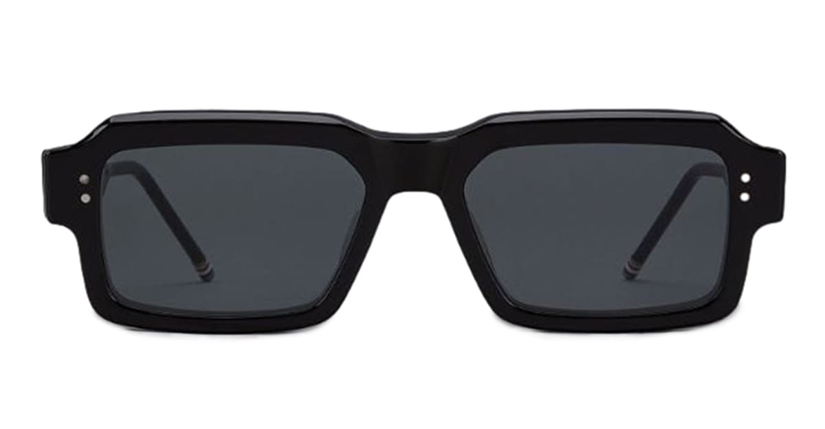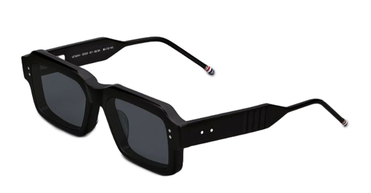 Thom Browne RECTANGULAR - SHINY BLACK (UES924A-G0002-001-56) are stylish rectangular sunglasses made in Japan. They feature black acetate frame, signature 4-bars, iconic Thom Browne striped enamel temple tips, and dark grey lens with 100% UV protection.