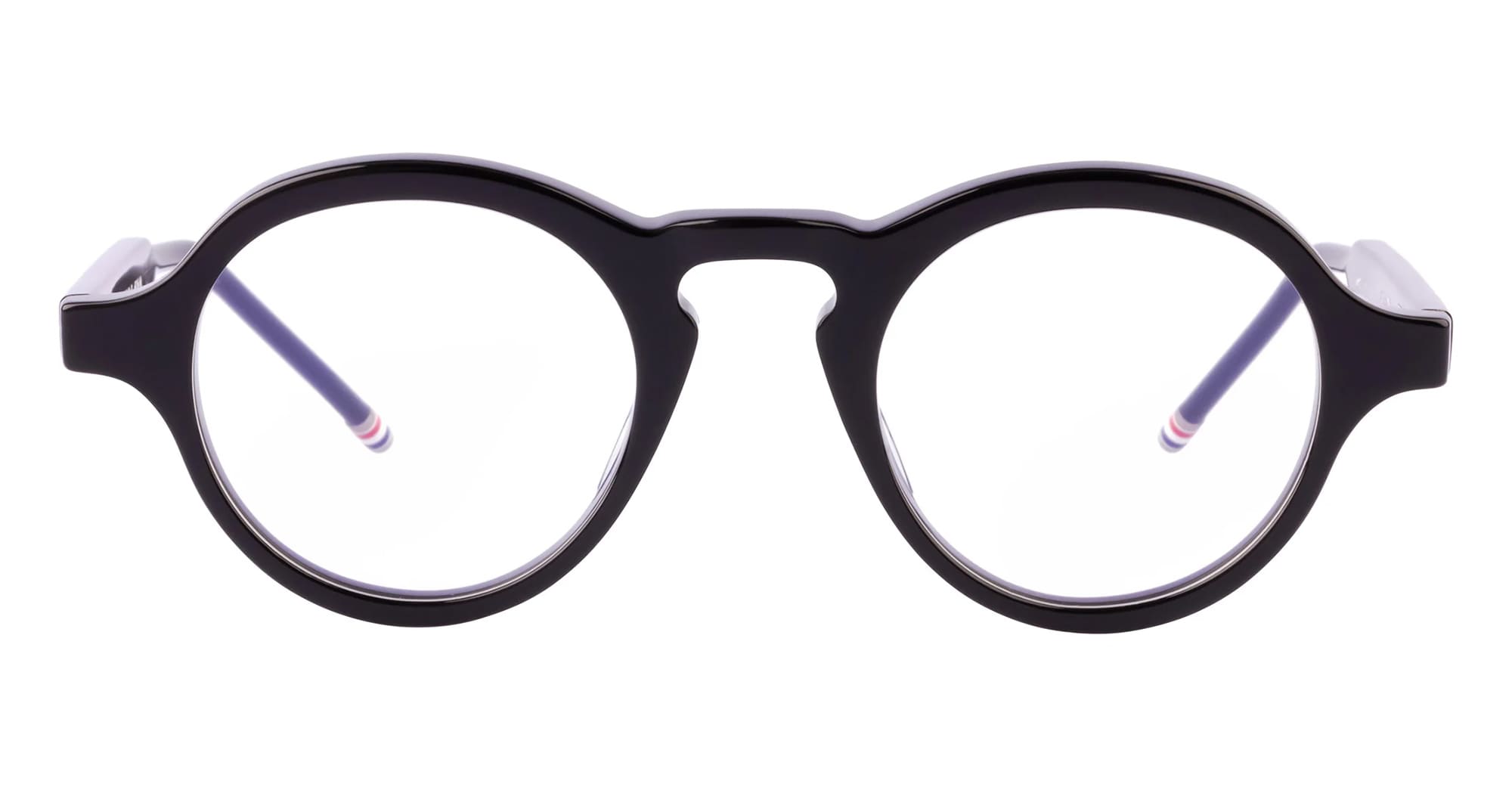 Thom Browne ROUND - BLACK RX (UEO926A-G0002-001-47) are elegant masculine round eyeglasses made in Japan. They feature a black acetate frame, signature 4-bars, iconic Thom Browne striped enamel temple tips.