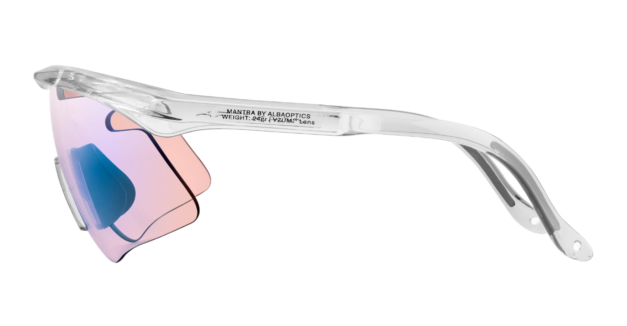 Alba Optics MANTRA - CRYSTAL GLOSSY / VZUM F-LENS FLM (8050054514192) sono occhiali da sole a mascherina prodotti in Italia. Sono caratterizzati da una montatura monopezzo in Tr90 leggera di 24 g, lenti intercambiabili, aste ergonomiche e lenti fotocromatiche VZUM specchiate con rivestimento schermante e protezione UV al 100%. Possono essere posizionati sul casco, sulla testa o appesi al collo.