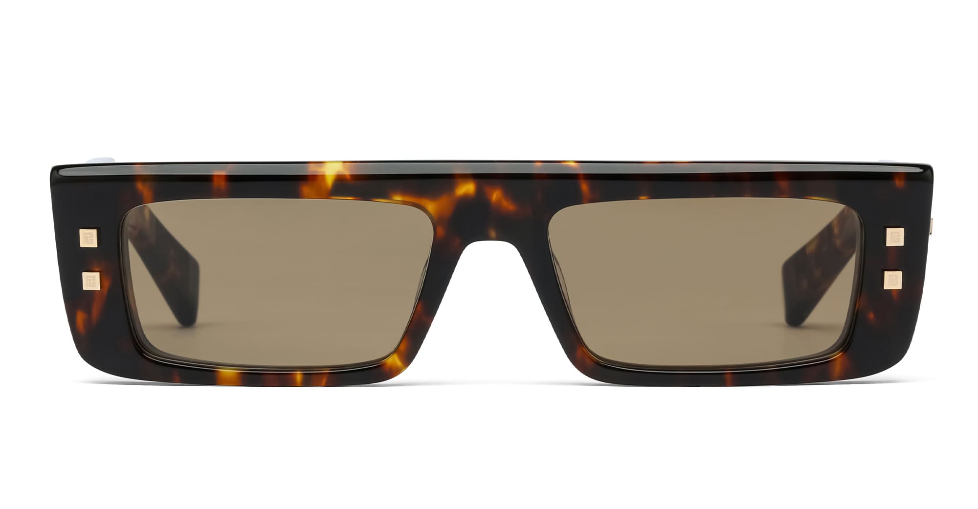 Balmain B-ARMY III - SPOTTED HAVANA / 18K GOLD (BPS-175C-54) sono occhiali da sole eleganti e minimali realizzati in Giappone. Sono caratterizzati da acetato giapponese premium da 8 mm color avana con rivetti quadrati a marchio B, cerniera personalizzata, anima in titanio con l'iconico motivo Labyrinth e lenti marroni con trattamento antiriflesso e protezione UV al 100%.