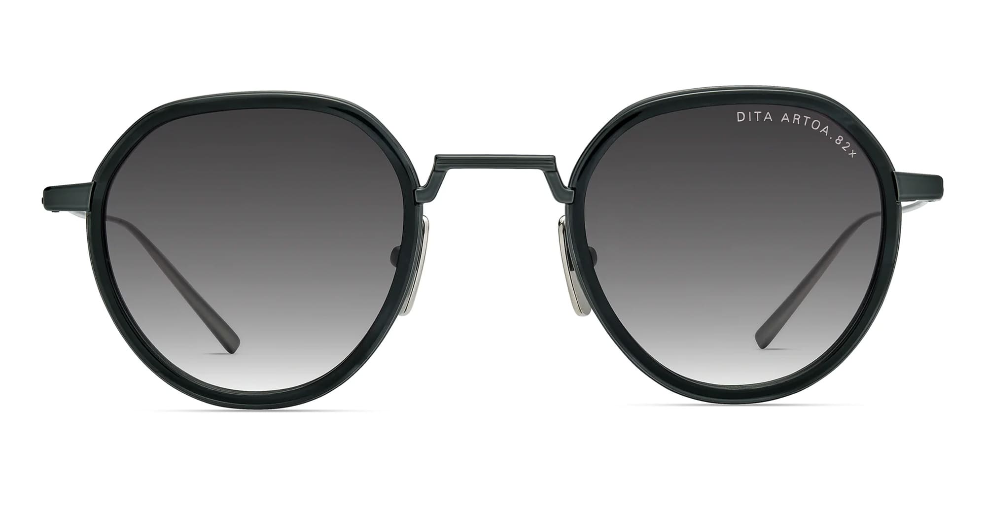 DITA ARTOA.82X - BLACK IRON / INK SWIRL / SILVER (DTS475-A-02) are vintage-inspired round sunglasses, part of the Dita Artoa Series. They feature all-titanium ultra-light frame, double pressed details on lens rim, custom titanium nose pads, titanium temples with elegant enamel details on temple tips, and gradient grey lens with 100% UV protection and anti-reflective coating.