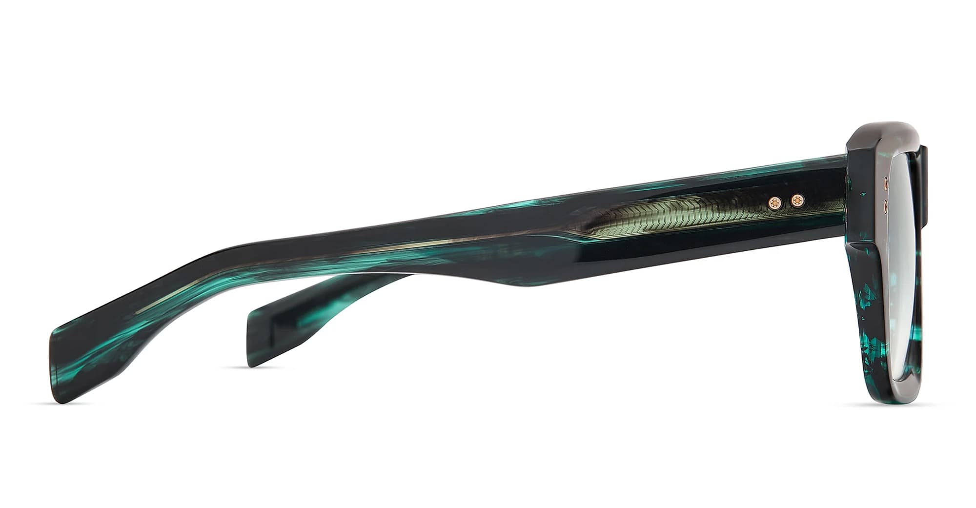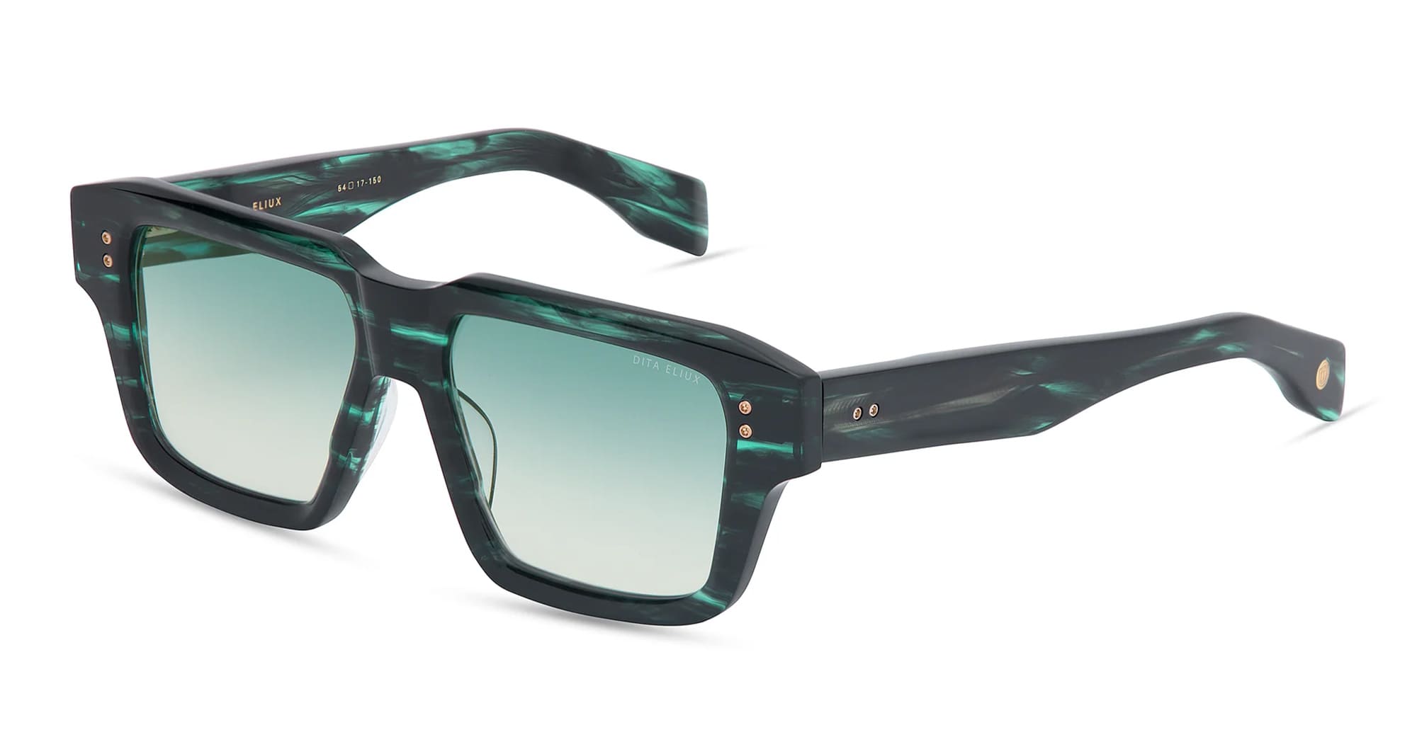 DITA ELIUX - STORM SWIRL (DTS751-A-02) sono audaci occhiali da sole squadrati, parte della collezione di occhiali Dita. Presentano una montatura in acetato giapponese nero e verde, una cerniera a 5 viti esagonali in titanio di proprietà di DITA, aste in acetato scolpite e lenti verdi sfumate con protezione UV al 100% e rivestimento antiriflesso.