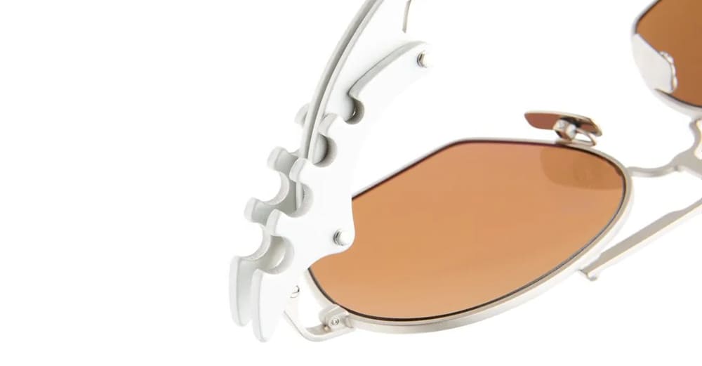 INNERRAUM EYEWEAR OBJECT 024 - SILVER MATT (IRSO24SM000000DM) sono occhiali da sole tondi in edizione limitata con elementi minimalisti, parte della Capsule Collection di Kuboraum Eyewear. Sono caratterizzati da montatura in metallo argento opaco con fondo piatto, doppia forma a T ponte, naselli regolabili in titanio, aste in metallo con elementi ergonomici in alluminio multistrato, punte delle aste in acetato e lenti arancioni dorate con protezione UV al 100%.