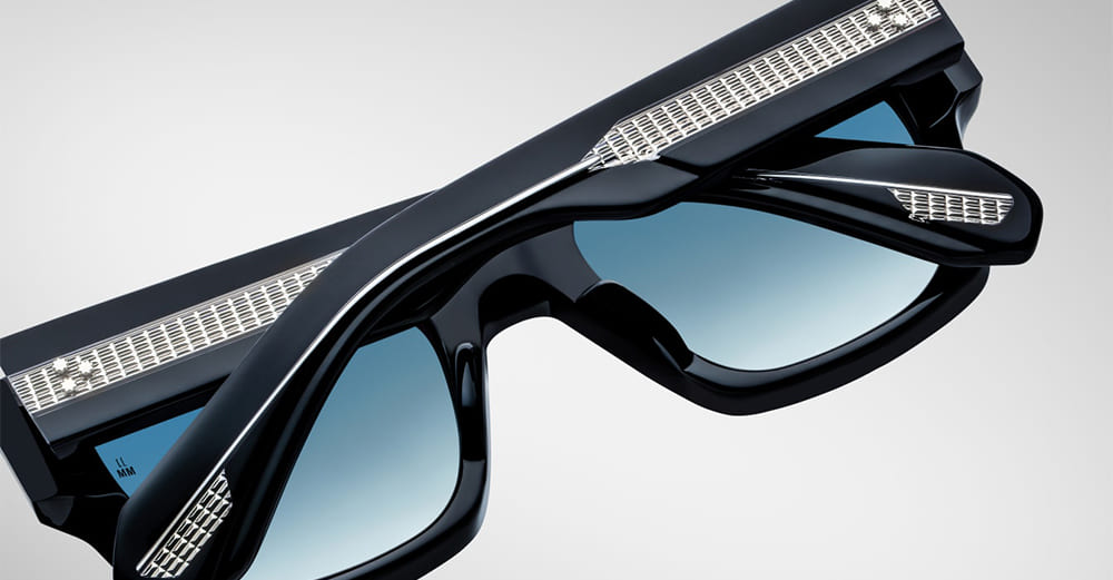 Jacques Marie Mage ENZO EPOXY - PRUISSE (JMMEZ-13J) sono occhiali da sole squadrati, audaci, sofisticati e iconici, ispirati a Enzo Ferrari - fondatore del marchio automobilistico. Una versione rivisitata per l'esclusiva JMM Epoxy Collection. Montatura in acetato blu da 10 mm, aste in acetato doppio laminato personalizzate, perni frontali a punta di freccia in argento sterling con intarsio epossidico blu navy, cerniera a vista anima a 7 barilotti fissata a tensione, lenti CR39 a 6 basi sfumate color Nettuno con trattamento antiriflesso sul retro e protezione UV al 100%.