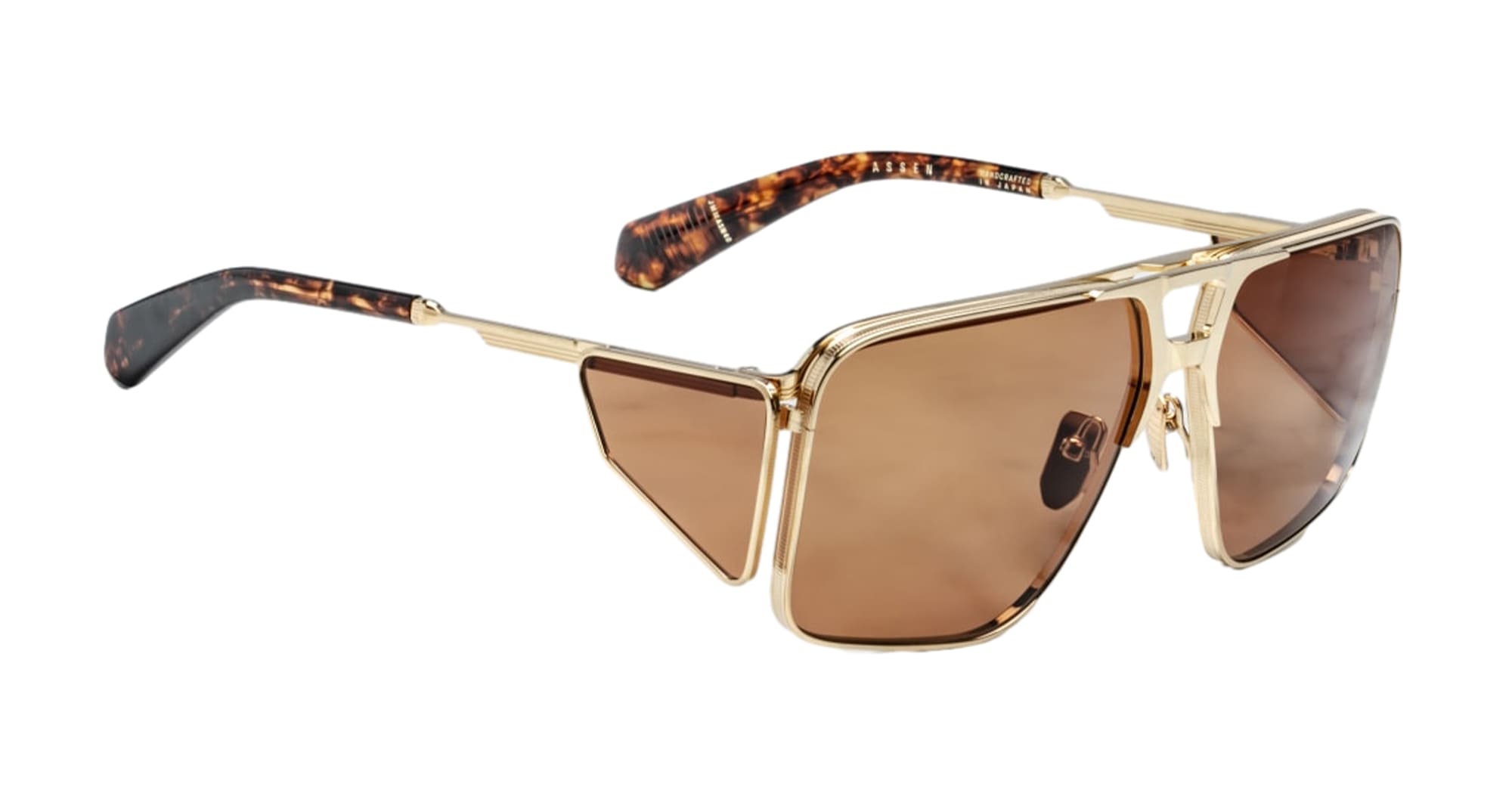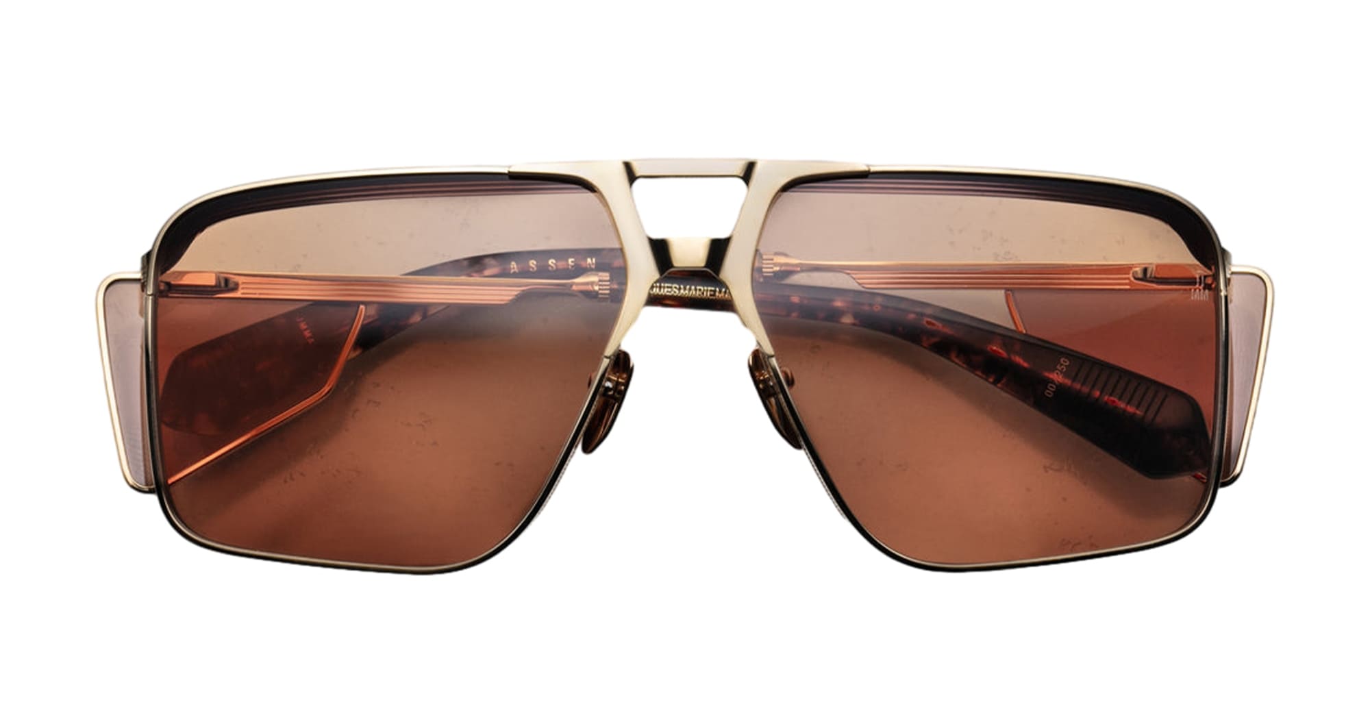 Jacques Marie Mage ASSEN - GOLD (JMMASN-40) sono eleganti occhiali da sole da navigatore in titanio prodotti in Giappone, parte della collezione Valentino Rossi for JMM e ispirati al circuito di Assen, dove Valentino ha vinto 10 gare. Sono caratterizzati da montatura in titanio 100% beta color oro, schermo laterale integrato per la lente CR39, audace doppio ponte, nuova cerniera monoblocco personalizzata con fissaggio a tensione, naselli personalizzati, aste in titanio incise con punte in acetato marrone agar e lente CR39 arancione a 4 basi con trattamento antiriflesso sul retro e protezione UV al 100%.