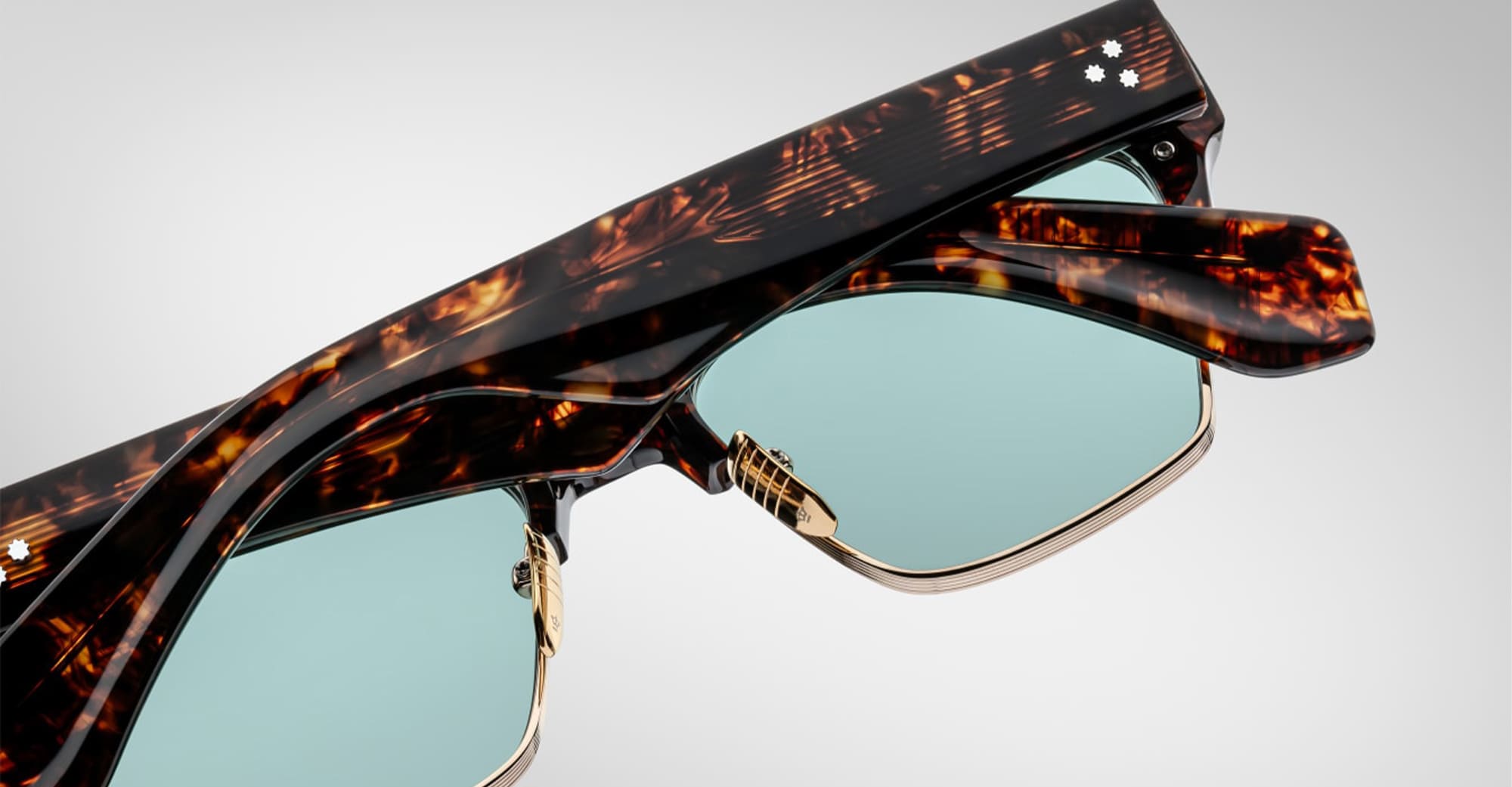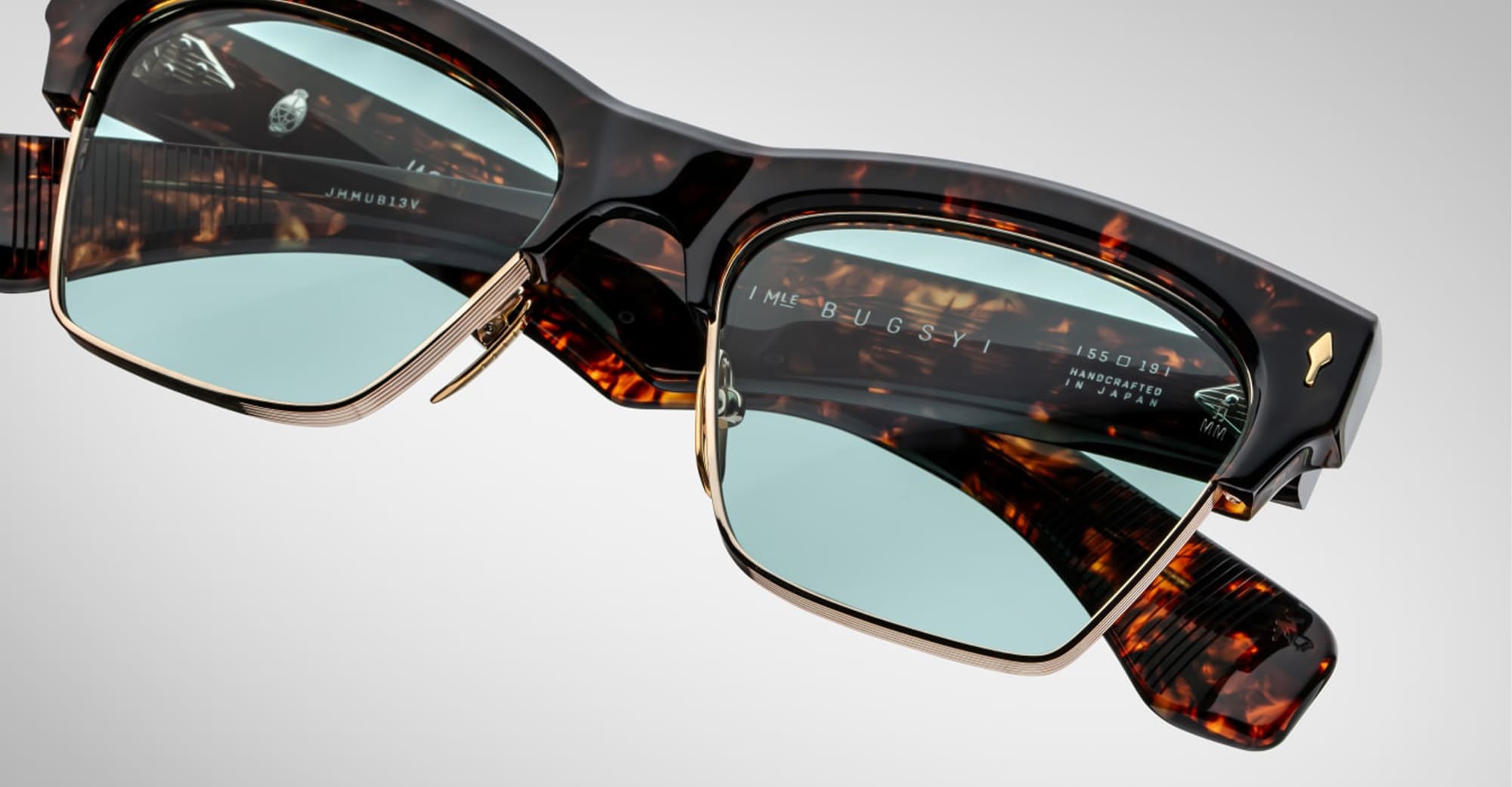 Jacques Marie Mage BUGSY - BEAU (JMMUB-13V) sono occhiali da sole clubmaster con una montatura media classica di metà secolo. Presentano una montatura in 100% beta titanio color oro chiaro con accenti in oro chiaro e tartarugato sopracciglia, aste in acetato con accenti in oro chiaro e acetato di cellulosa. acetato di cellulosa, aste in acetato con anima nascoste, cerniera personalizzata a 7 barilotti con fissaggio a tensione, naselli custom in titanio, lenti CR39 a 6 basi turchesi con trattamento antiriflesso posteriore e protezione UV al 100%.