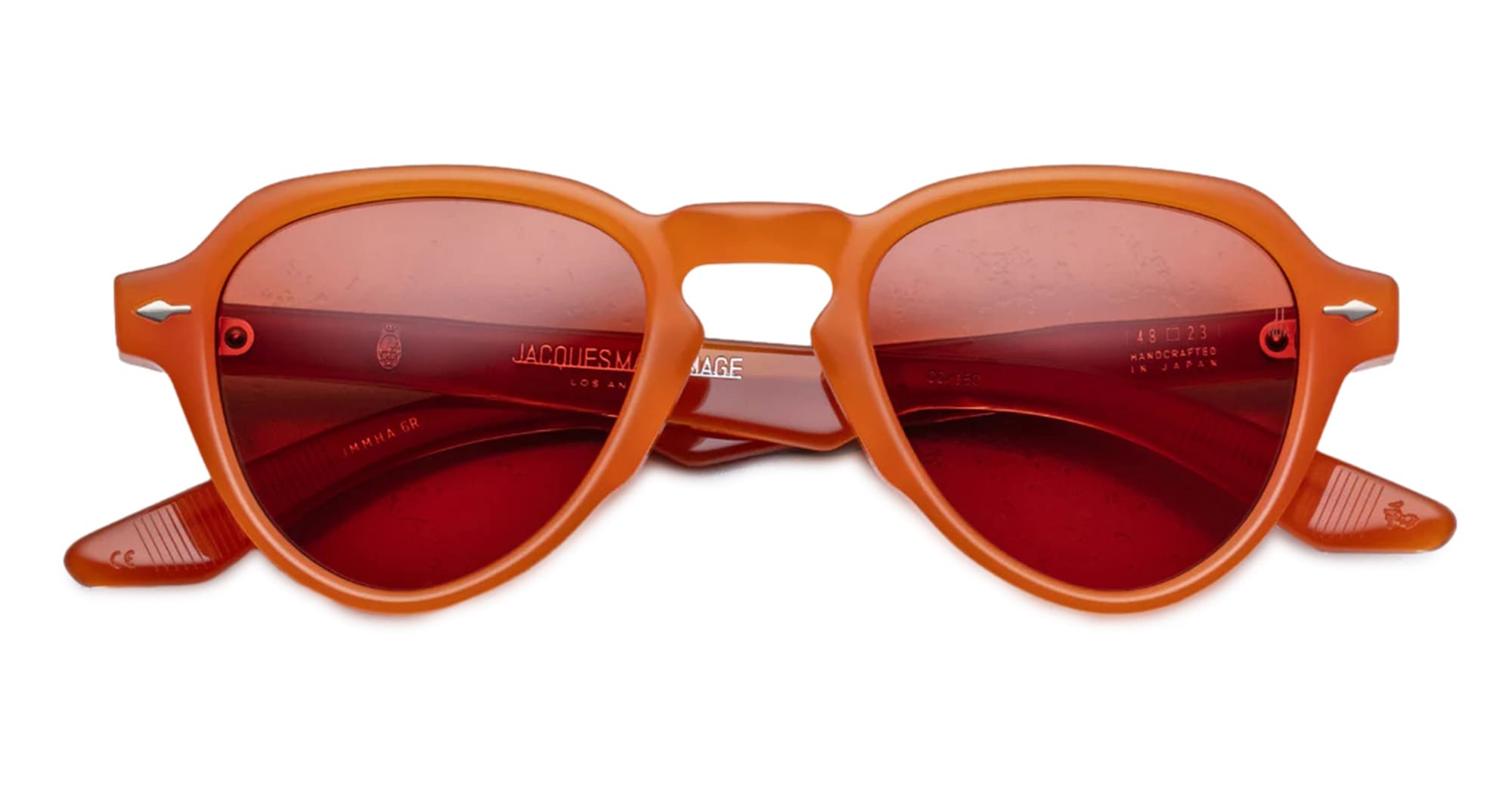 Gli occhiali da sole Jacques Marie Mage HATFIELD - STINGRAY (JMMHA-6R) sono occhiali da aviatore eleganti ed equilibrati con una forma esagerata di lente a goccia. Montatura arancione da 10 mm acetato di cellulosa, aste doppie laminate personalizzate, perni frontali a punta di freccia in argento sterling, buco della serratura ponte, cerniera a vista anima, cerniera a 5 barilotti con fissaggio a tensione, lenti CR39 arancioni con trattamento antiriflesso e protezione UV al 100%.