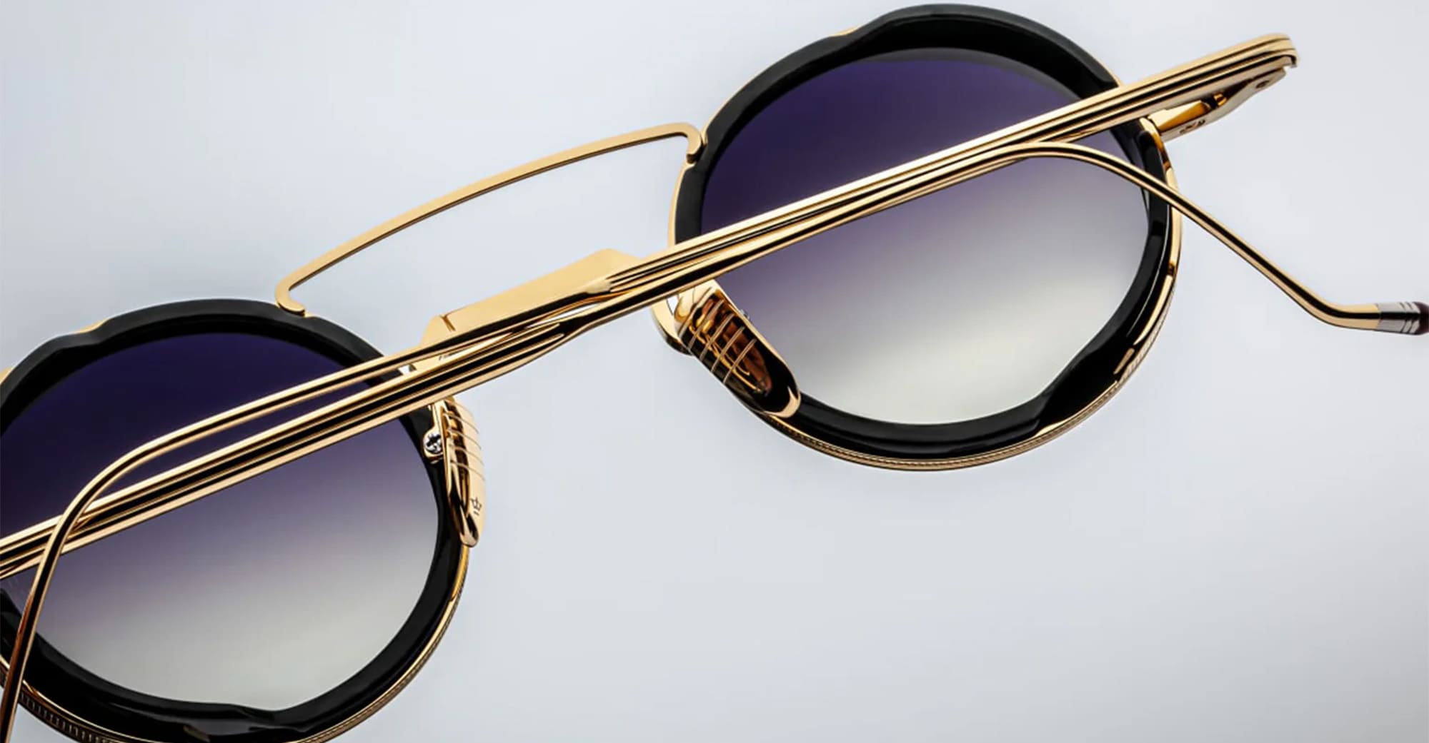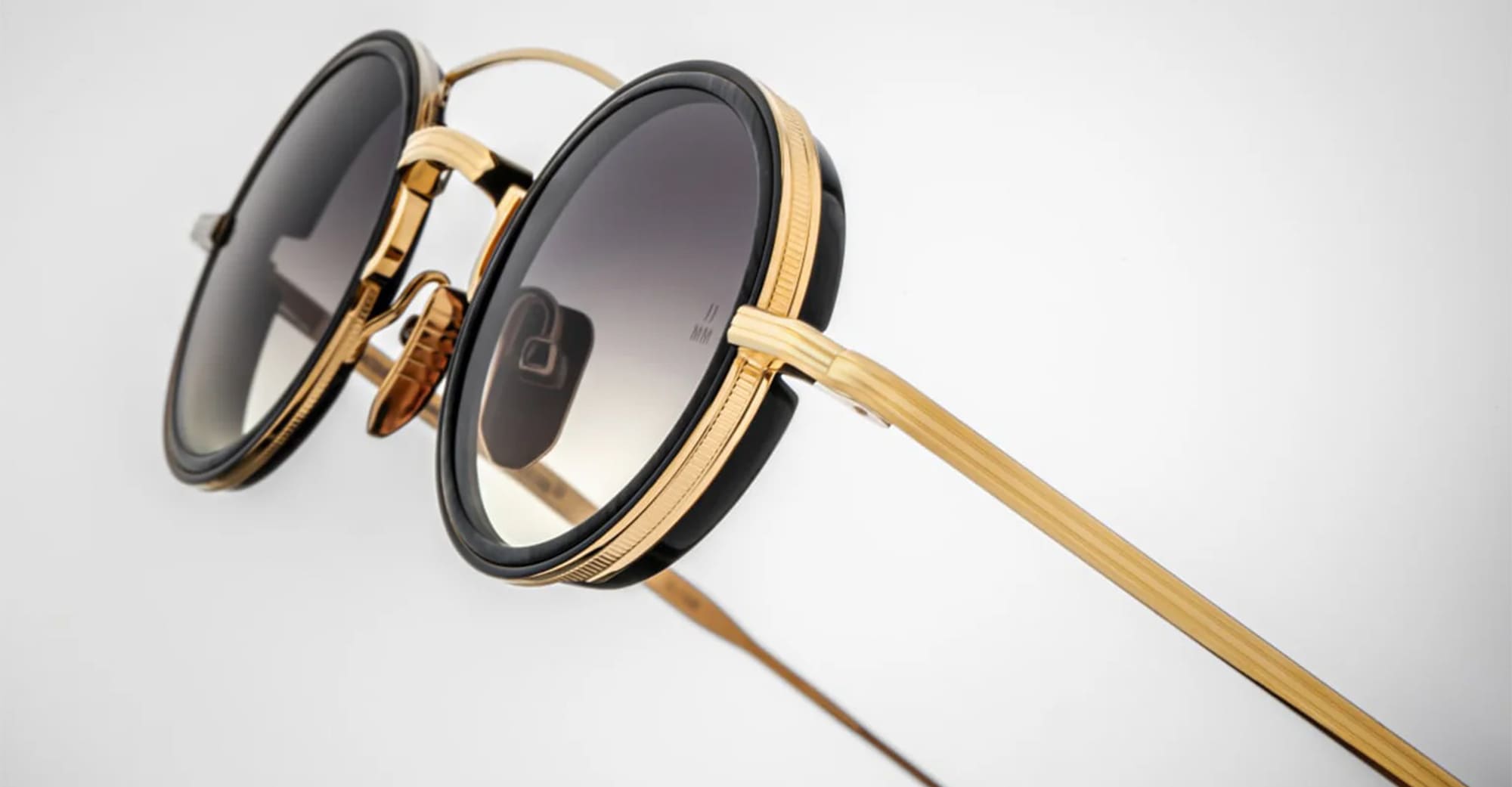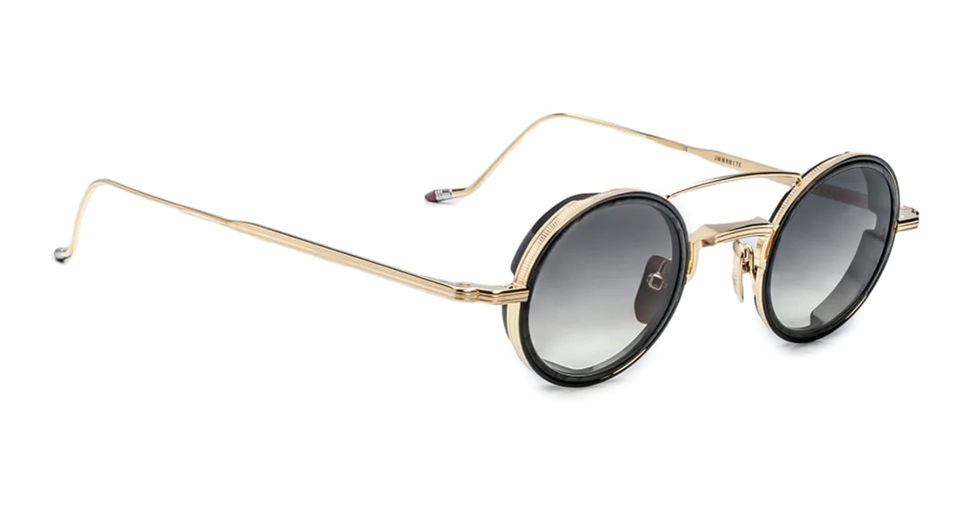 Jacques Marie Mage RINGO 2 - BNG (J-ESN-RN-S6017E-OS) sono occhiali da sole rotondi ed eleganti di ispirazione anni '60 con un esclusivo doppio ponte. Presentano una struttura in 100% beta titanio color oro lunare con decorazioni incise, doppio ponte, inserto oculare in acetato di radica nera, cerniera personalizzata, aste in titanio con punte epossidiche bordeaux, nasello personalizzato con logo, lente CR39 a 2 basi sfumata alba con trattamento antiriflesso posteriore e protezione UV al 100%.