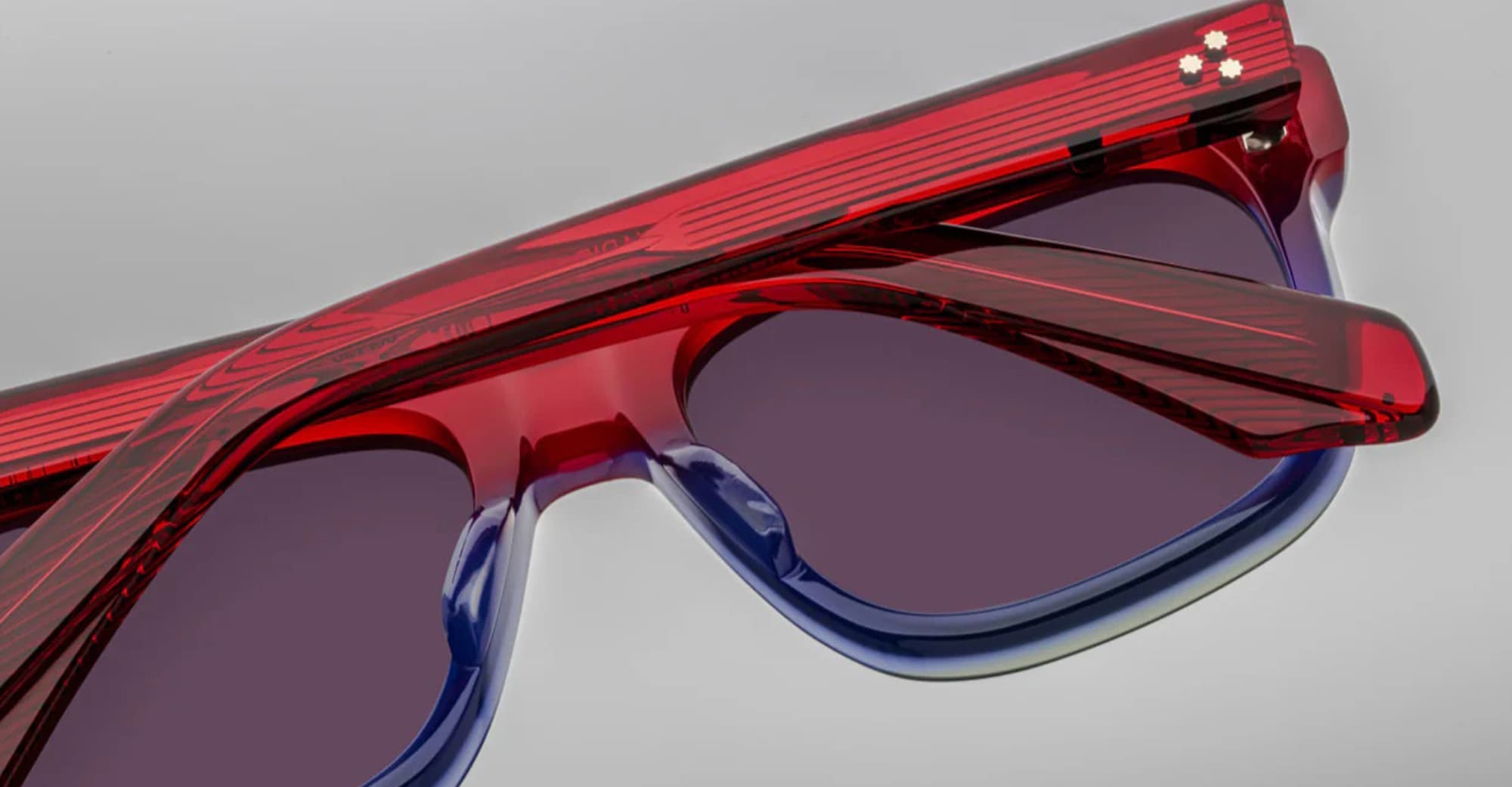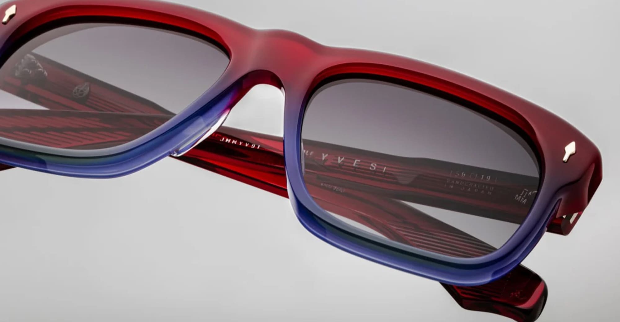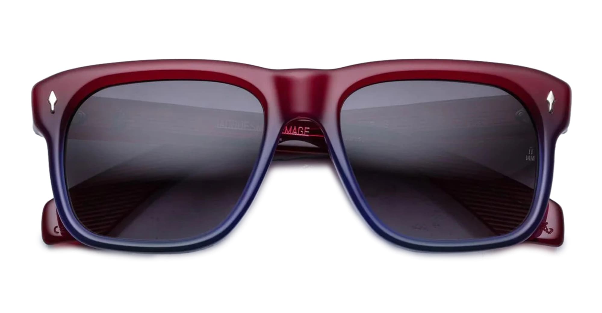 Gli occhiali da sole Jacques Marie Mage YVES - VESPER (JMMYV-9I) sono occhiali squadrati con lenti morbide, ispirati alle iconiche montature indossate da Yves Saint Laurent negli anni '70. Montatura da 10 mm in rosso e blu acetato di cellulosa, aste doppie laminate personalizzate, perni frontali a punta di freccia in argento, cerniera a 7 barilotti con rivetti a forma di sperone, logo cammeo 3D in metallo nascosto anima, lente CR39 a base jet 4 con trattamento antiriflesso sul retro e protezione UV al 100%.