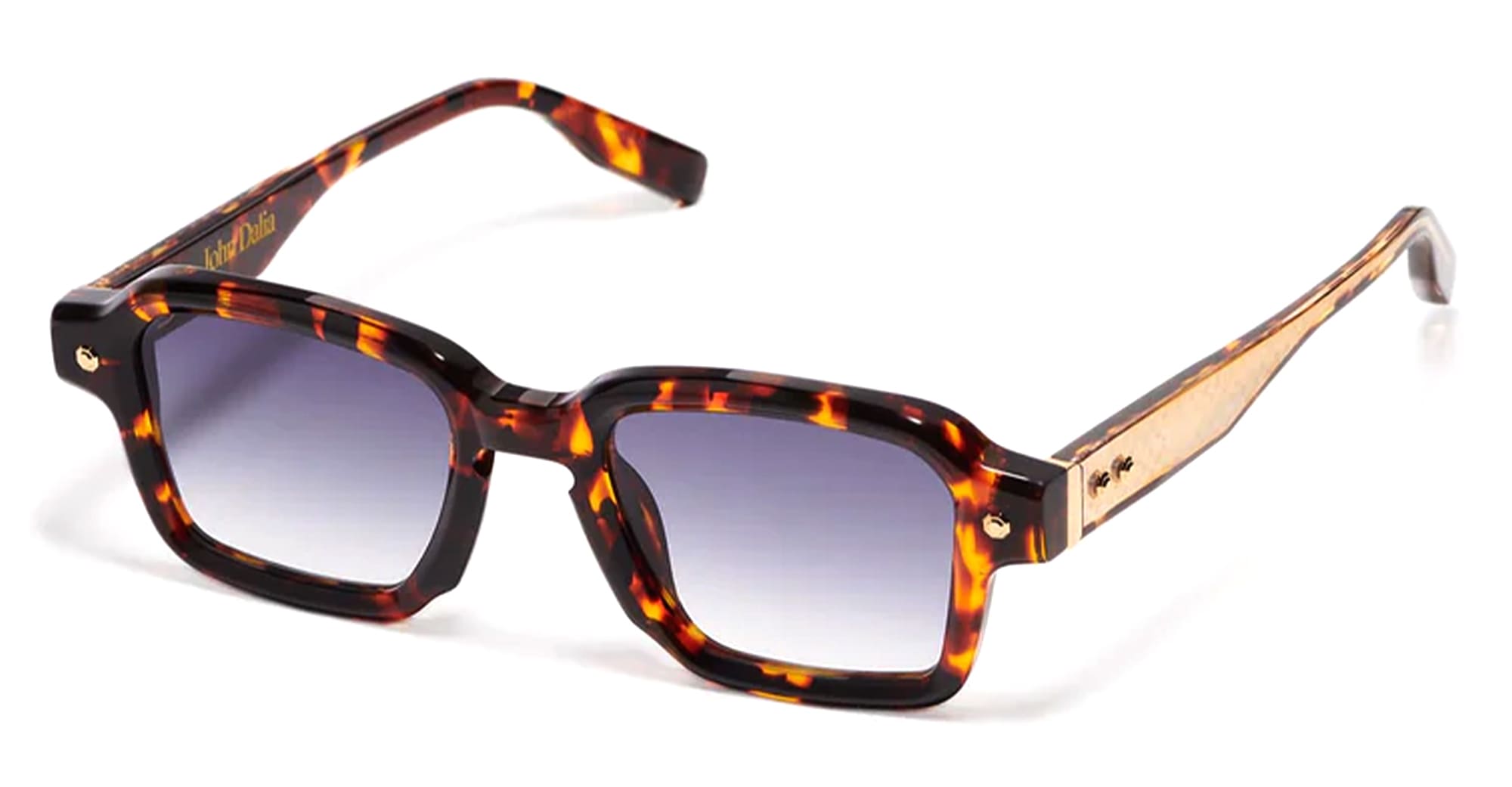 John Dalia PROJECT 07 - C642 CLASSIC HAVANA / YELLOW GOLD (P07-C642) are elegant unisex squared sunglasses, part of the exclusive John Dalia eyewear collection. They feature a 8mm havana acetate frame with yellow gold decorative pins, sculpted acetate temples, exposed wirecore, blue gradient CR39 lenses with an anti-reflective coating on the inner surface, and 100% UV protection.