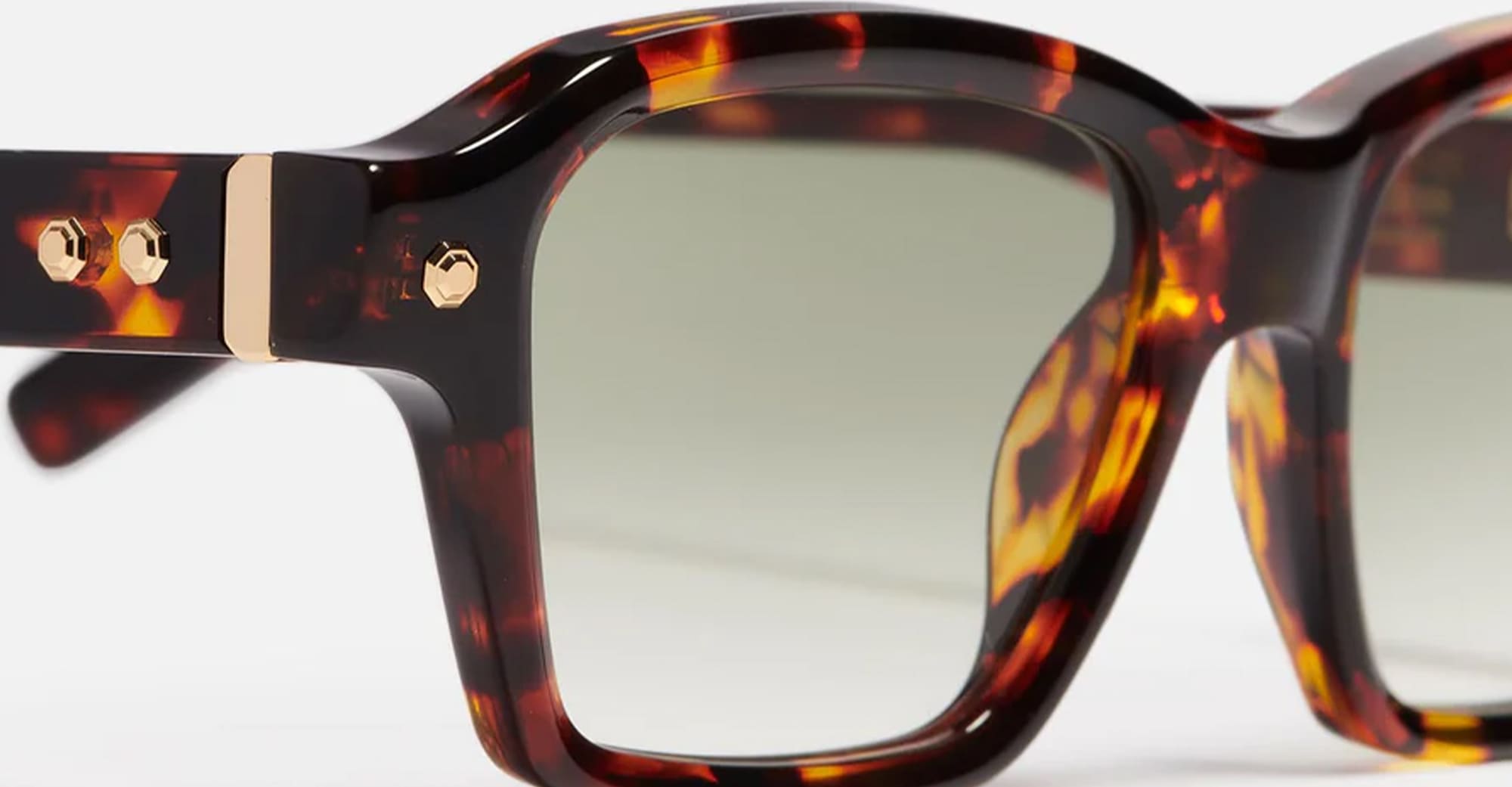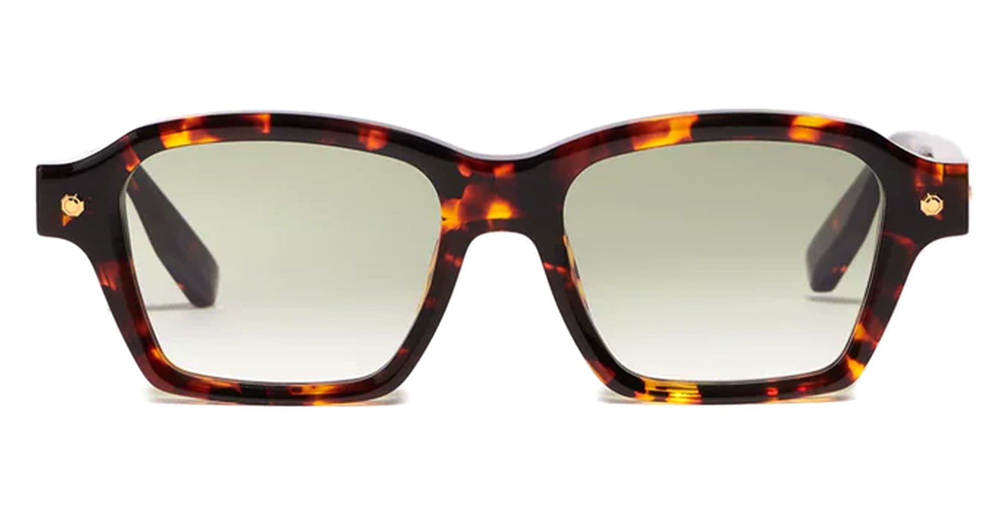 John Dalia PROJECT 08 - C141 - CLASSIC HAVANA - YELLOW GOLD (P08-C141) are elegant unisex squared sunglasses, part of the exclusive John Dalia eyewear collection. They feature a 8mm havana acetate frame with yellow gold decorative pins, sculpted acetate temples, exposed wirecore, light green gradient CR39 lenses with an anti-reflective coating on the inner surface, and 100% UV protection.