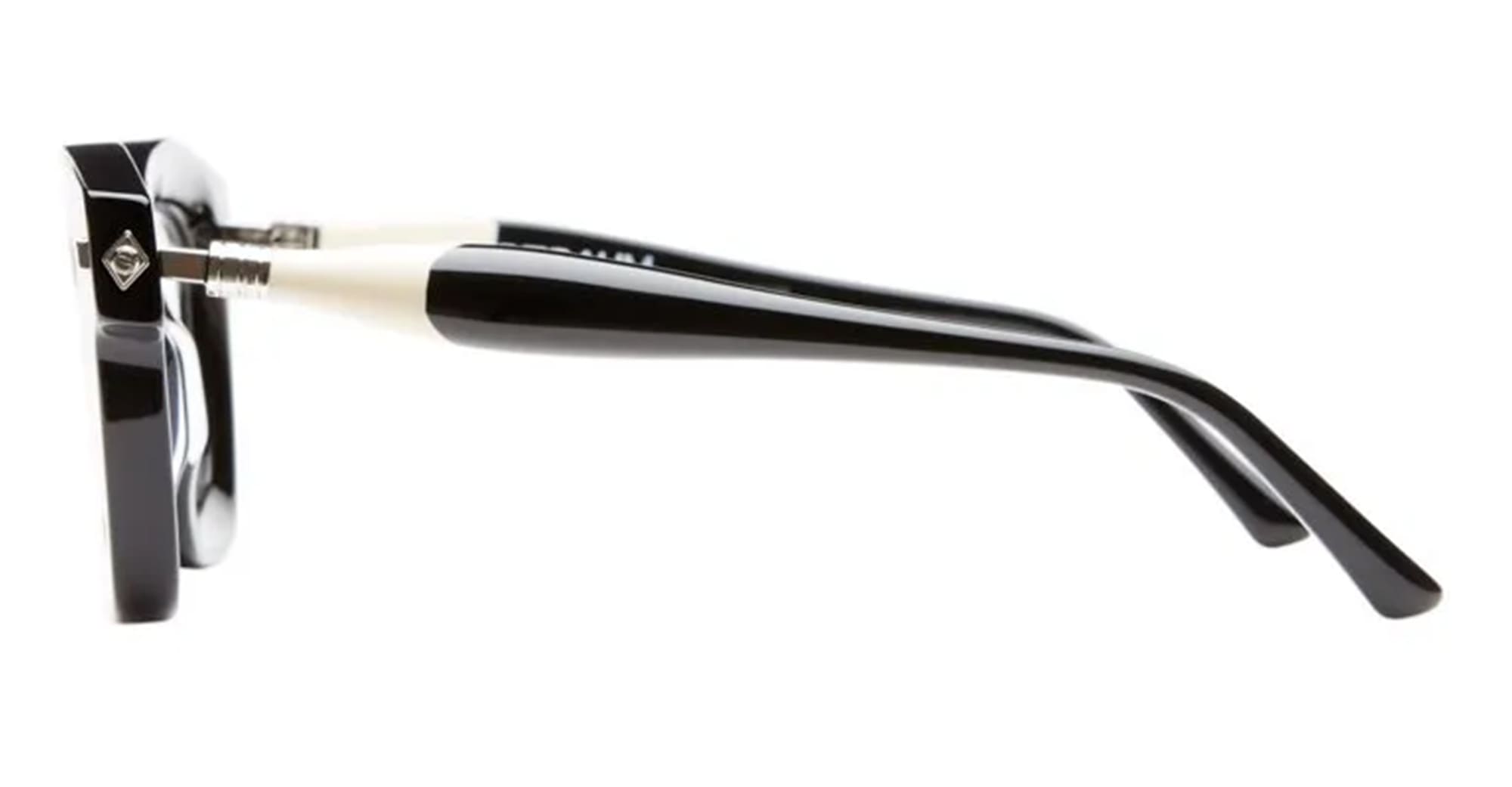 Kuboraum MASK J2 BSA - BLACK SHINE RX (KRO0J2BSA0BA25OP) sono occhiali da vista squadrati con bordi morbidi, parte dell'esclusiva collezione di occhiali Kuboraum. Presentano una montatura in acetato nero Mazzucchelli, aste in acetato spesse e arrotondate bicolore.