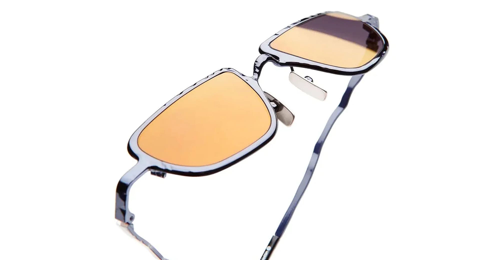 Kuboraum MASK Z28 BL - DARK BLUE (KRSZ28BL000000GP) are modern d-frame sunglasses, part of the Kuboraum eyewear collection. They feature blue metal structure with hand-finish look, metal temples with acetate temple tips, custom nose pads, and flash grey pink lens with 100% UV protection.