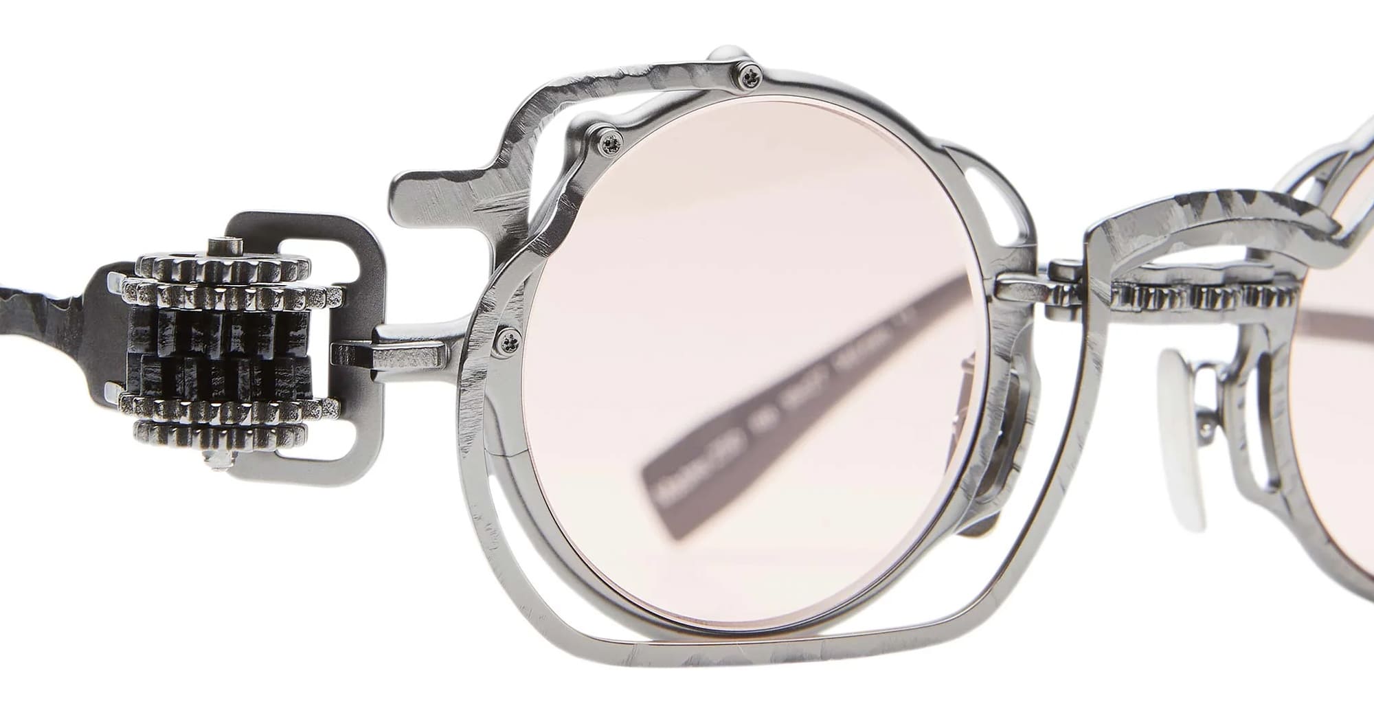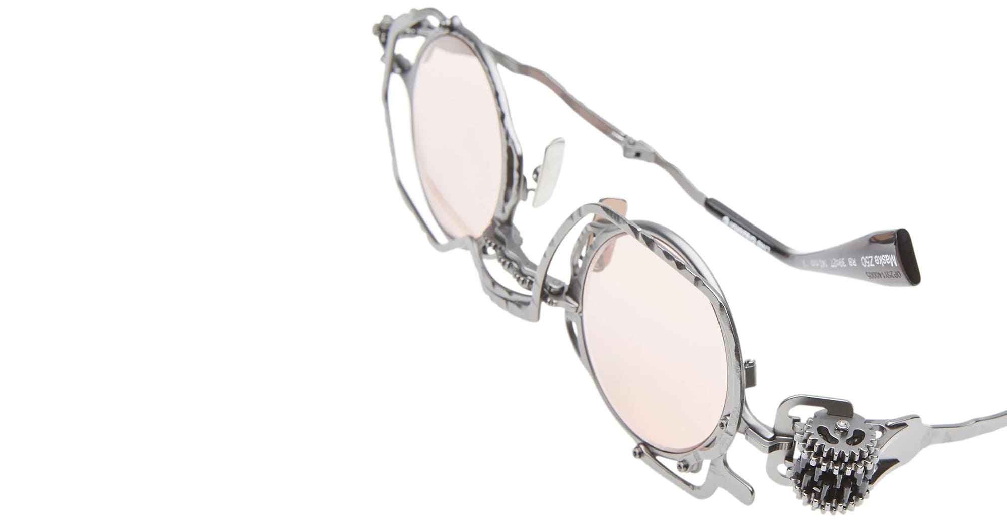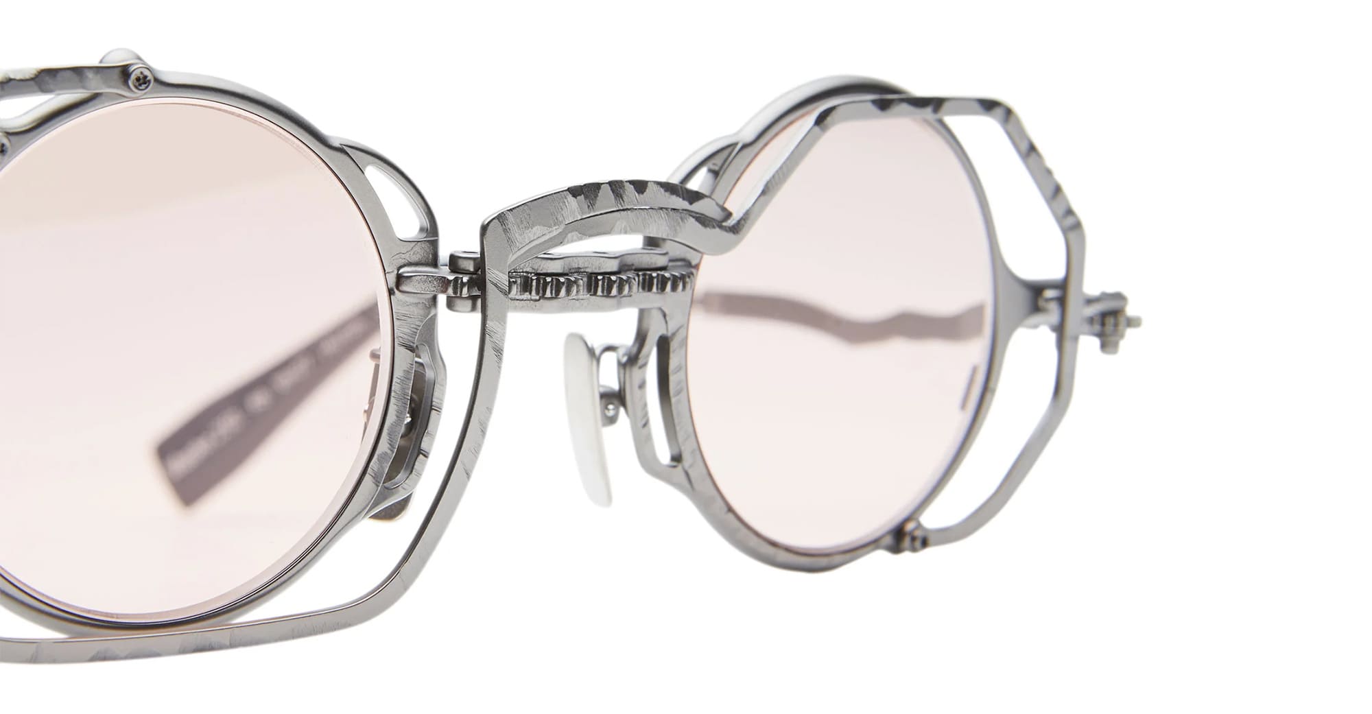 Kuboraum MASK Z50 RB - GUNMETAL (KRSZ50RB0000002P) are modern round sunglasses with a foldable gear system, part of the Kuboraum eyewear collection. They feature gunmetal metal structure with hand-finish look, double lens rim, metal temples with acetate temple tips, custom nose pads, iconic gear hinge, and light pink lens with 100% UV protection.
