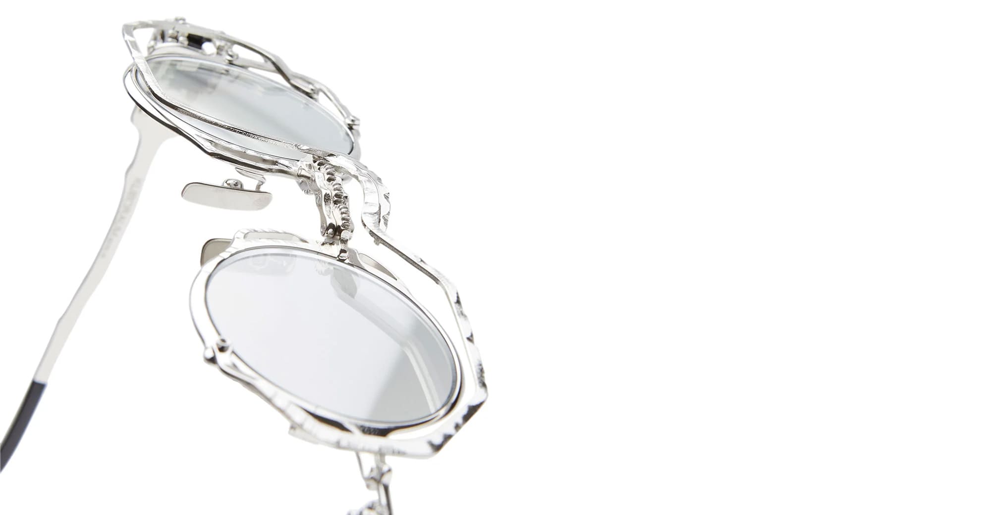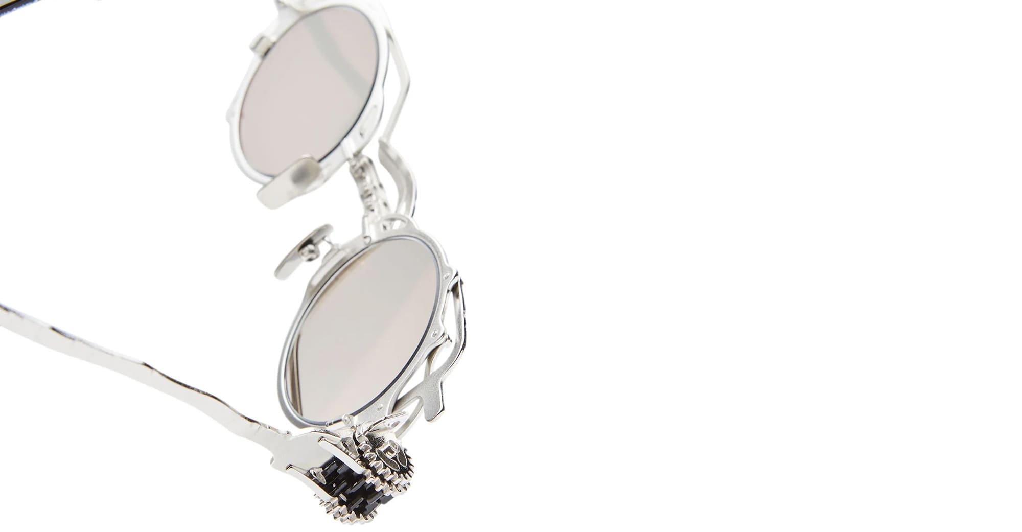 Kuboraum MASK Z50 SI - SILVER (KRSZ50SI000000FY) are modern round sunglasses with a foldable gear system, part of the Kuboraum eyewear collection. They feature silver metal structure with hand-finish look, double lens rim, metal temples with acetate temple tips, custom nose pads, iconic gear hinge, and silver lens with 100% UV protection.