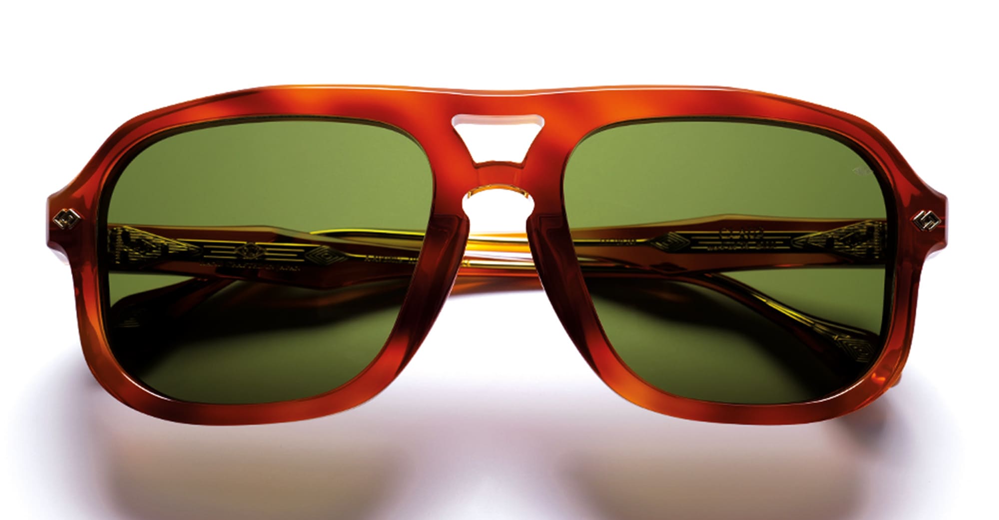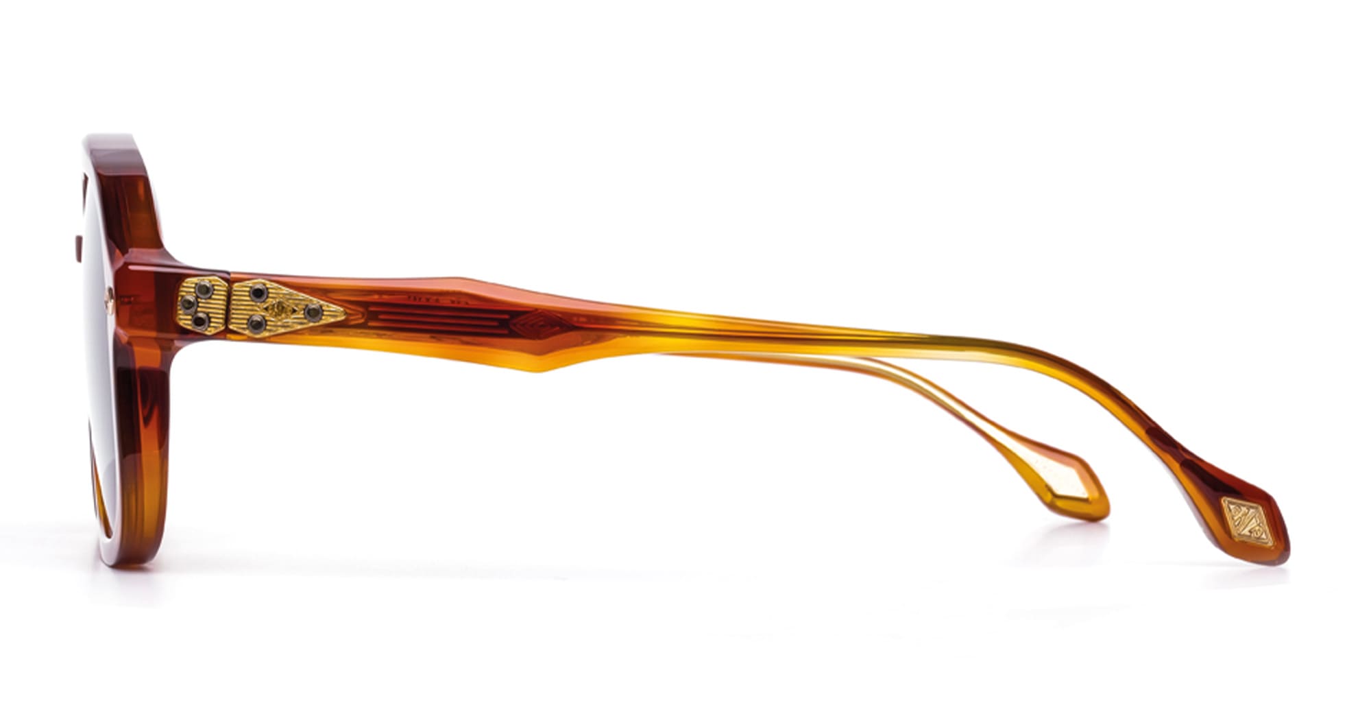 Daizo CLAUS - HAVANA LIGHT / 18K GOLD PLATED (A-AVS001e-HL1-VB01) are late 1970s-inspired square aviator sunglasses, part of the Daizo custom-batch eyewear collection and handcrafted in Japan. They feature havana Italian and Japanese acetate frame with beveled edging for three-dimensional depth, unique 180 degree hinge system with outer matching plates and detailed with custom two tone rivets, Signature laminated wire core and embedded DAIZO diamond logo at temple tips, and vintage brown lens with 100% UV protection. This frame is ergonomically designed to give ultimate wearing comfort.