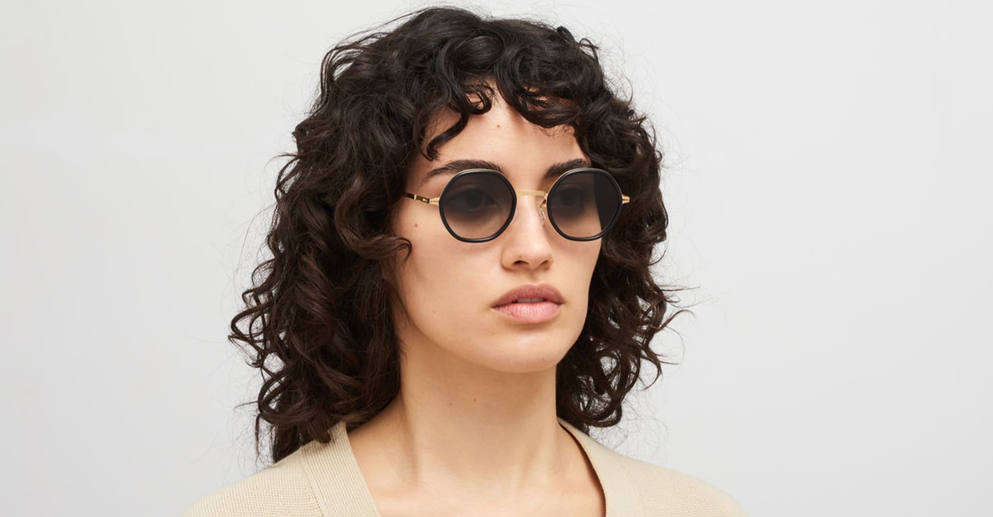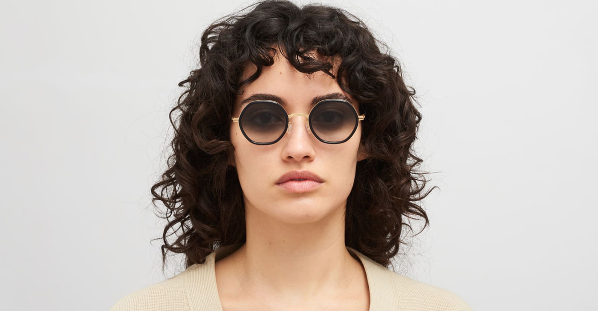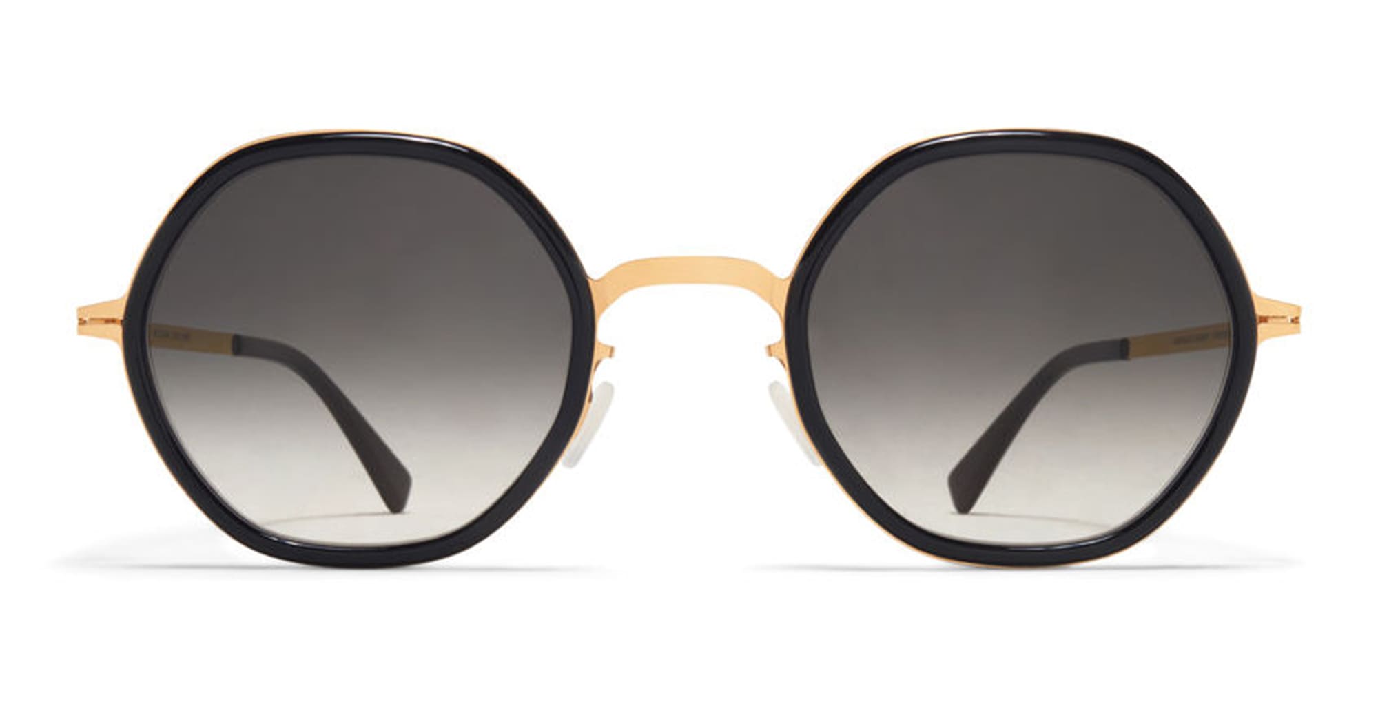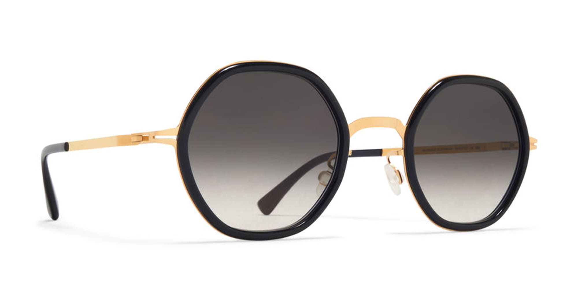 Mykita ALYA - A76 GLOSSY GOLD / MILKY INDIGO (10085970) sono eleganti occhiali da sole tondi prodotti in Germania, parte della collezione Mykita Lite. Presentano una struttura in acciaio inossidabile dorato con inserti in acetato blu indaco, aste in acciaio inossidabile dorato con punte in acetato, naselli personalizzati, cerniera a spirale brevettata, lenti nere sfumate con protezione UV al 100%.