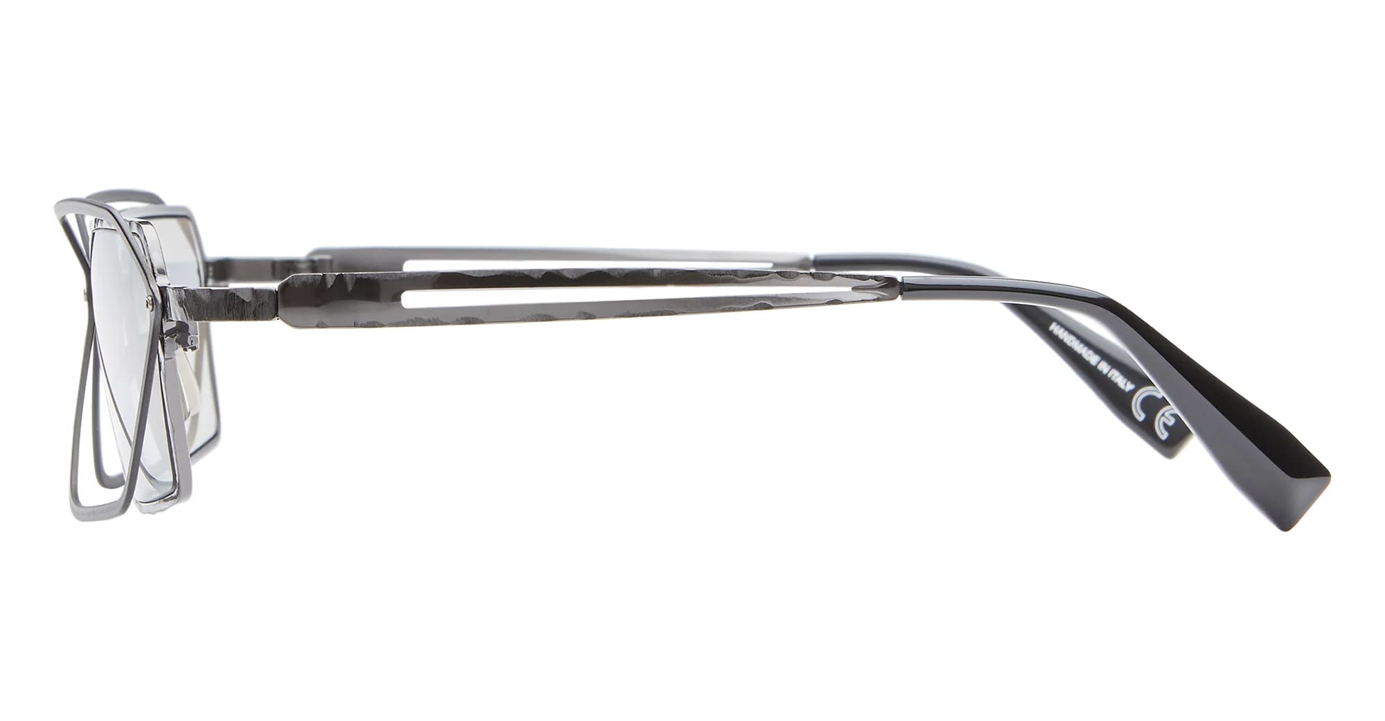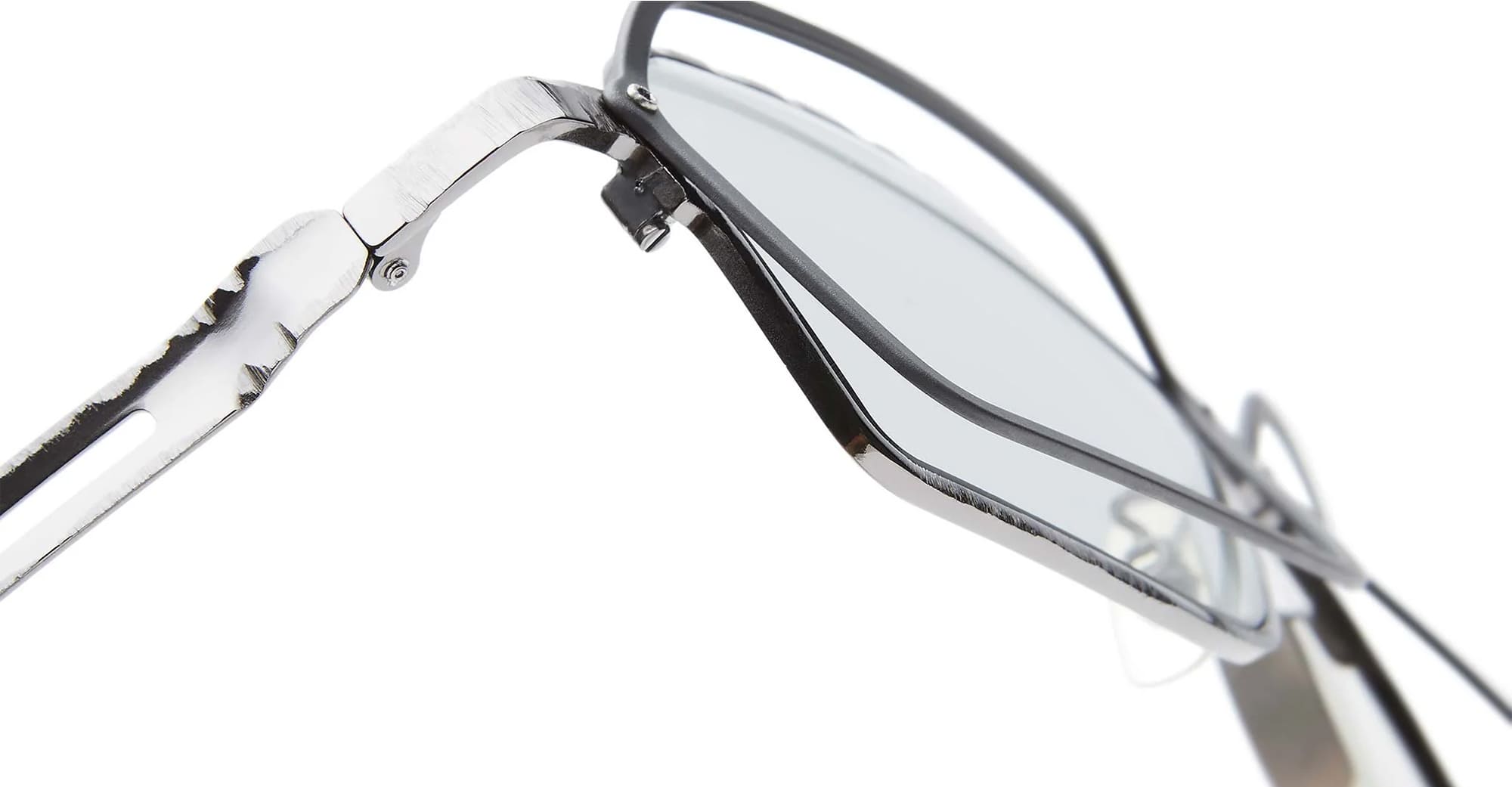 Kuboraum MASK H15 - GUNMETAL (KRSH15RH0000004G ) are elegant round sunglasses with a hammered texture effect, part of the exclusive Kuboraum eyewear collection. They feature silver metal frame with double lens rims, iconic Kuboraum metal temples with acetate tips, and light grey lens with 100% UV protection.