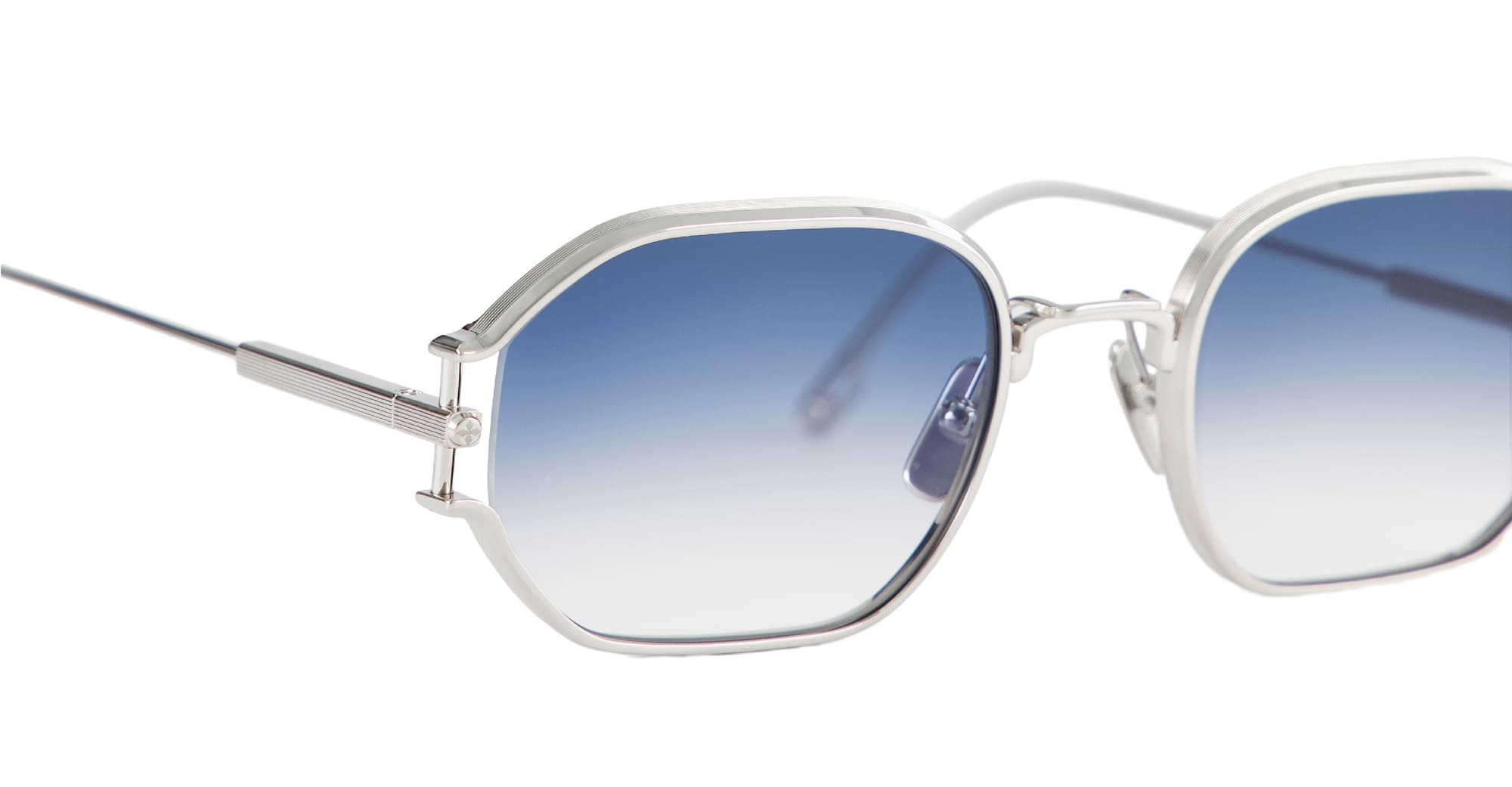 Gli occhiali da sole SATO ENIR - PLATINUM (ENIRS401) sono occhiali ottagonali prodotti in Giappone. Presentano una struttura in titanio platino, aste in titanio con decorazioni incise, naselli in titanio personalizzati e lenti blu sfumate con protezione UV al 100%.