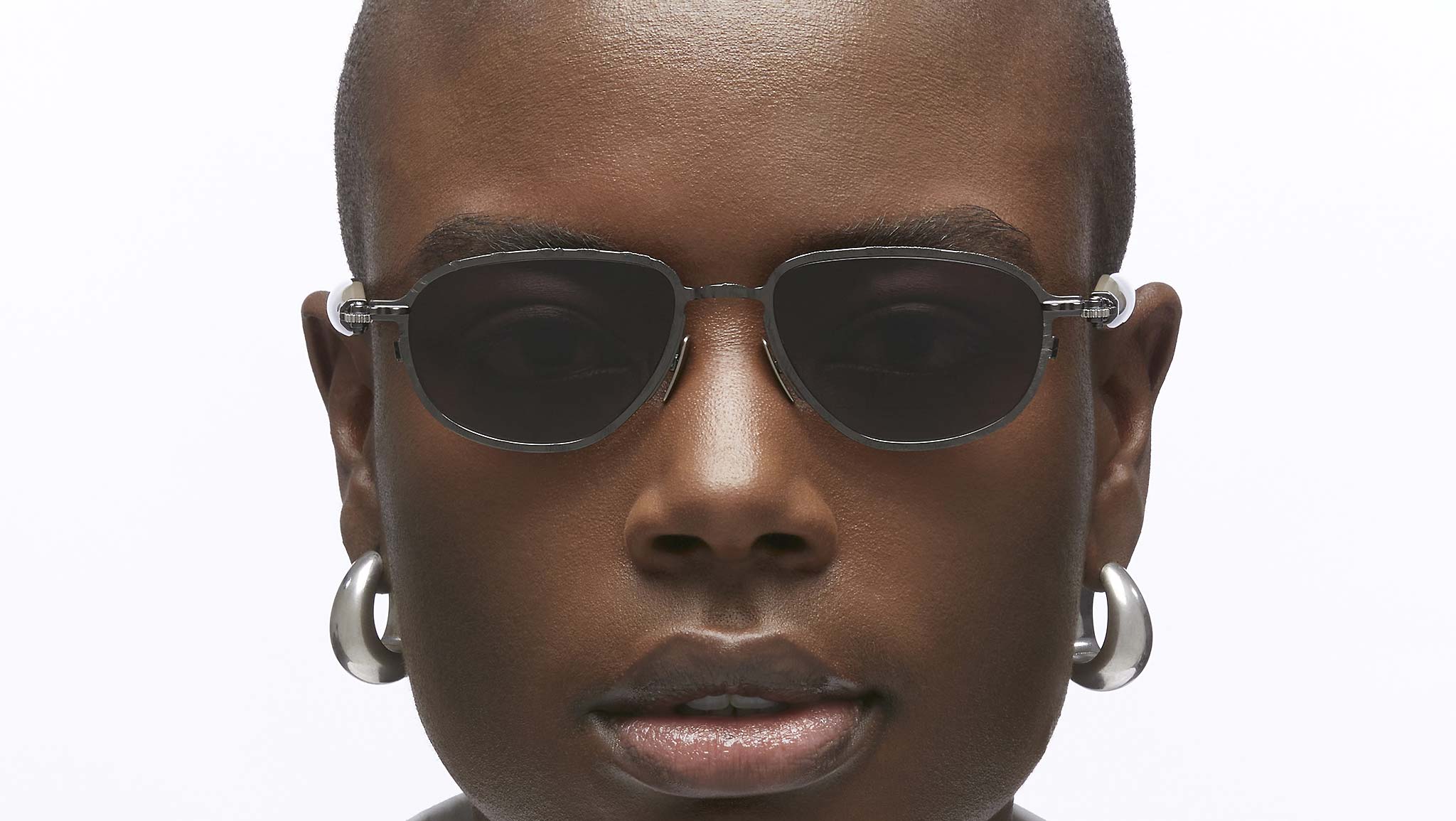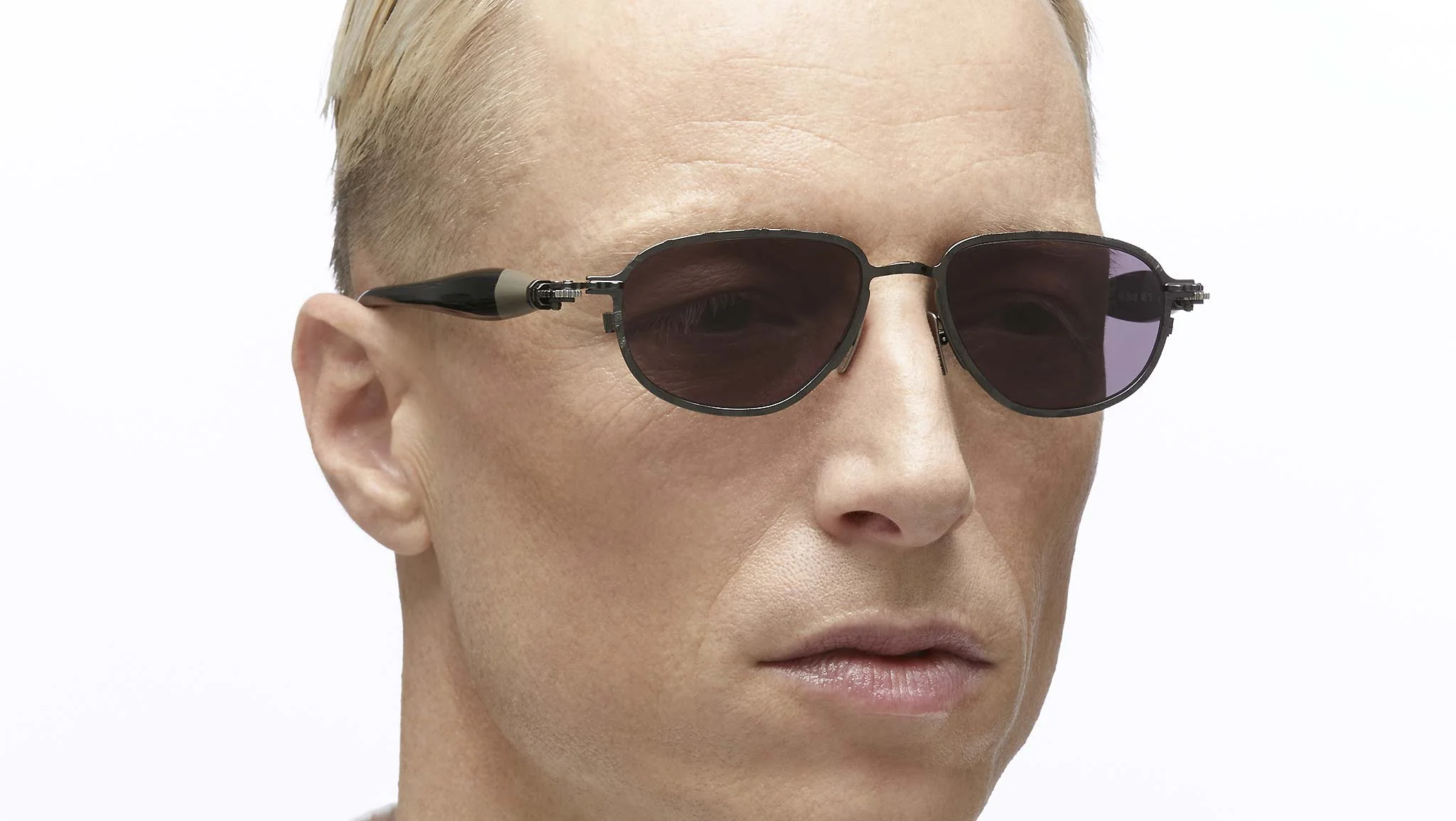 Kuboraum MASK J71 RH - RUTHENIUM (KRSJ71RH0000004Y) are modern oval sunglasses with a tear drop shape, part of the exclusive Kuboraum eyewear collection. They feature ruthenium metal front with a hammered finish, iconic Kuboraum gear hinge, thick bi-color acetate temples, and grey lens with 100% UV protection.