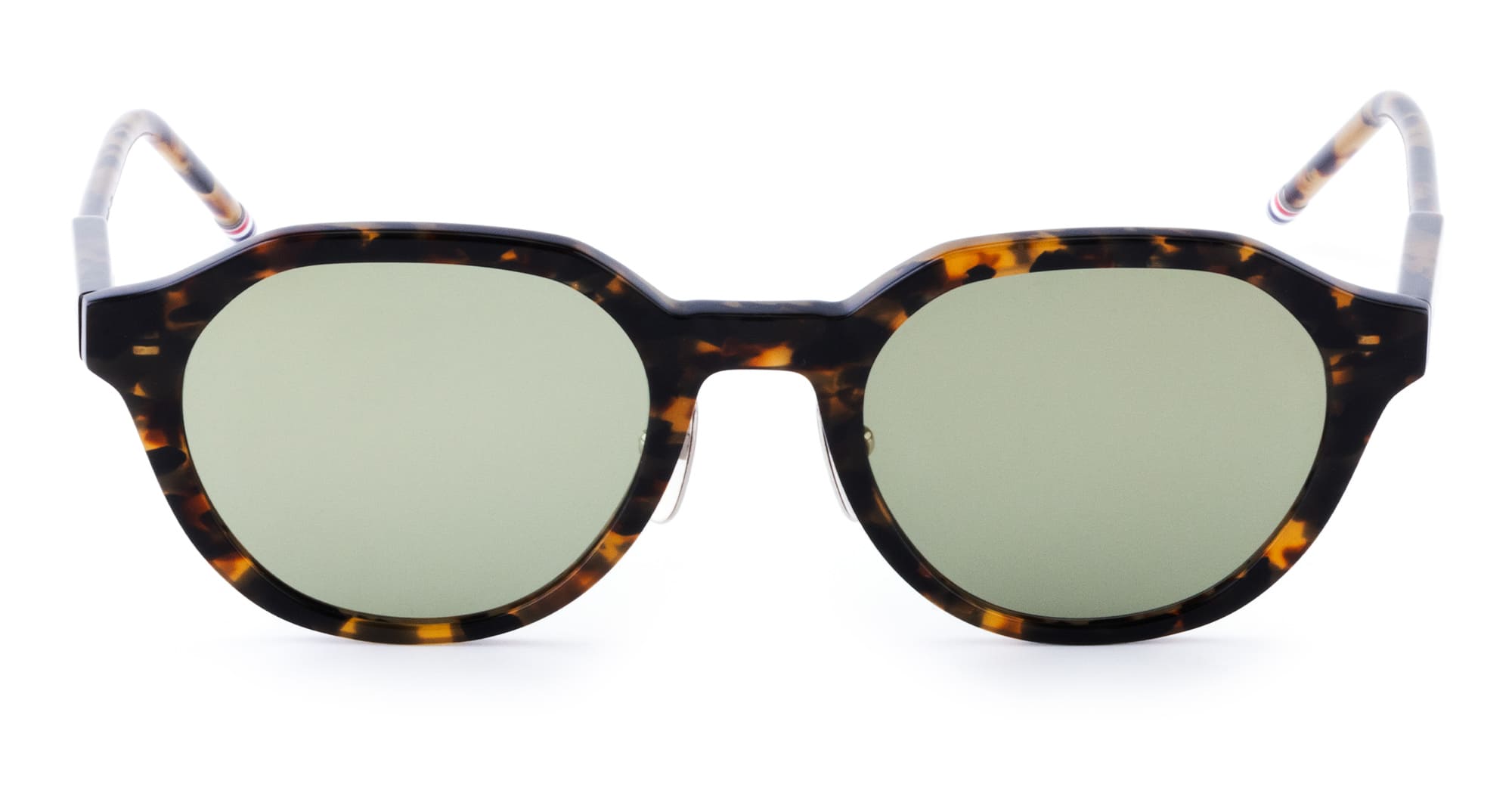 Thom Browne OVAL - DARK BROWN (UES944A-G0002-205-49) sono eleganti occhiali da sole ovali prodotti in Giappone, parte dell'esclusiva collezione Thom Brown Eyewear. Presentano una montatura in acetato marrone scuro, naselli personalizzati, 4 stanghette firmate, aste in acetato con le iconiche aste smaltate a righe di Thom Browne e lenti verdi con protezione UV al 100%.