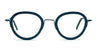 Theo eyewear STAMPPOT - 44 (STAMPPOT-44) sono occhiali da vista pantos made in Belgio. Presentano una struttura in acciaio inossidabile blu, naselli personalizzati.